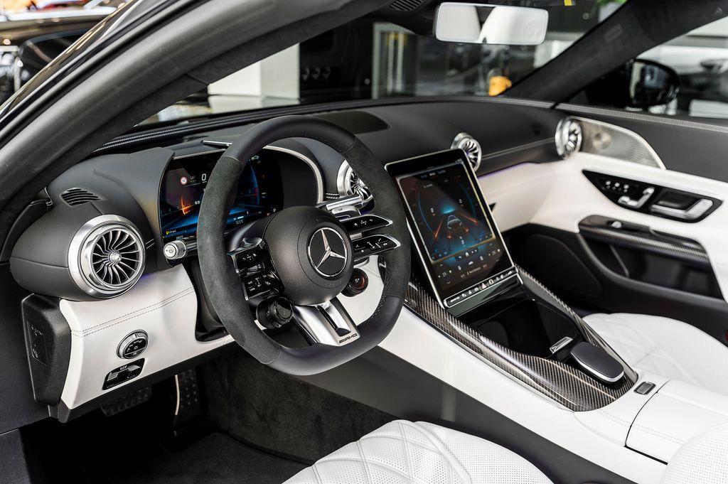 | Doplňující popis: | Vůz skladem, Sada AMG Aerodynamics, Ozdobné výplně interiéru - AMG carbon, Aktivní asistent změny jízdního pruhu, Asistent přizpůsobení rychlosti, Sportovní volant AMG Performance potažený kůží nappa/mikrovlákno DINAMICA, Sada AMG Night II, Sada navigace MBUX Premium, Sada energizujícího komfortu Plus, Typ Premium Plus, Sada jízdních asistentů Plus, Sada pro parkování s kamerou 360 pro couvání, Sada komfortních funkcí zrcátek, Sada AMG Night, Paměťová sada pro sedadla řidiče a spolujezdce, Sada AMG DYNAMIC PLUS, Sada ochrany vozidla URBAN GUARD Plus, 21 disky kol AMG z lehké slitiny kované, Upozornění na zapnutí zadních bezpečnostních pásů na sdruženém přístroji, Rozšířená realita pro navigaci multimediálního systému MBUX, Osvětlené prahové lišty dveří s výměnným krytem, Černě lakované prvky v masce chladiče, Sada AMG Dark Light, Vnější elektricky sklopná/výklopná zpětná zrcátka, Asistent dopravního značení, Multimediální systém MBUX | |