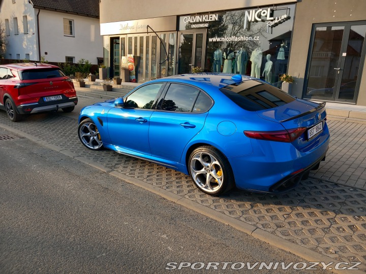 | Nadstandardní výbava: | Alfa Romeo Giulia Quadrifoglio, 510 koní, Vmax 309 km/h, 0-100 za 3,9 sec. Datum 1. registrace 04/2018, STK do 04/26, najeto 130tis km, perfektní stav, nové prodáno v ČR, vzorně servisováno, komplet palubní literatura, já ji mám od 01/2000 a 45tis km, za mě v zimě nejetá. Verze před FL, takže ještě bez filtru pevných částic. Aktuálně po velkém servisu: olej motor vždy jen Selenia Quadrifoglio + filtry, olej + filtr v převodovce včetně proplachu, svíčky, nové čelní sklo, na podzim nové destičky, zadní pneu. Výbava: ZF 8 st. automat s řazením pod volantem, karbonový aktivní přední spoiler, karbonová střecha, barva Missano Blu, kůže + alcantara s bílým a zeleným obšitím, stavitelný multifunkční volant s obšitím kůží + alcantarou s karbonovými výplněmi, pádla pod volantem, velká navigace s Android Auto/Apple Car play, hudba Harmon/Kardon + subwoofer, bezklíčový vstup a start, 2 originál klíče s D.O. + 1 s dálkovým startem, centrál dálkový, 4x el. okna, vyhřívaná a sklopná el. zrcátka, ambientní osvětlení interiéru, sportovní vyhřívaná sedadla s el. ovládáním, imobilizér, palubní počítač, stabilizace podvozku (ESP), el. ovládaná klapka výfuku, aut. dvouzónová klimatizace, senzor světel, senzor stěračů, tónovaná skla, venkovní teploměr, ostřikovače světlometů, adaptivní tempomat, posilovač řízení, brzdový asistent, senzor opotřebení brzdových destiček, natáčecí bi-xenonové světlomety, zadní světla LED, 10x airbag, plní EURO 6b, el. stavitelný podvozek, originál alu kola 19", asistent jízdy v jízdním pruhu, senzory tlaku pneu, ABS, asistent jízdy v koloně, asistent rozjezdu do kopce (HSA), asistent změny jízdního pruhu, aut. aktivace výstražných světel, atd. | |