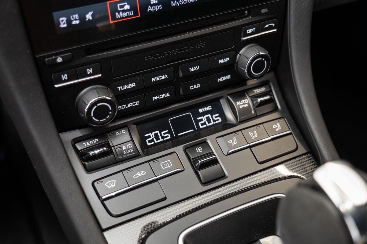 | Doplňující popis: | 6bodový bezpečnostní pás pro spolujezdce, Vnější a vnitřní zrcátka s automatickým zatmavením a dešťovým senzorem, Clubsport paket, Osvětlené prahové lišty z karbonu, Klíč od vozu lakovaný v barvě karoserie včetně koženého pouzdra, Karbonové okénko ve sloupku (okénko za dveřmi), Koberečky, Černé LED světlomety včetně systému Porsche Dynamic Light System Plus (PDLS+), Světelný paket interiéru / Light Design paket, Interiérový paket s kontrastním prošíváním, Palivová nádrž o objemu 90 litrů, Kožený kryt sloupku řízení s kontrastním prošíváním, Lifting systém přední nápravy, Středová konzola, víko zadní odkládací schránky v Alcantaře s nápisem Porsche, Digitální rádio (DAB+), Kuřácký paket, Couvací kamera, BOSE® sound systém, Sport Chrono paket, Pokročilý systém sledování vozidla Porsche (PVTS Plus), Weissach paket, Titanový ochranný rám | |