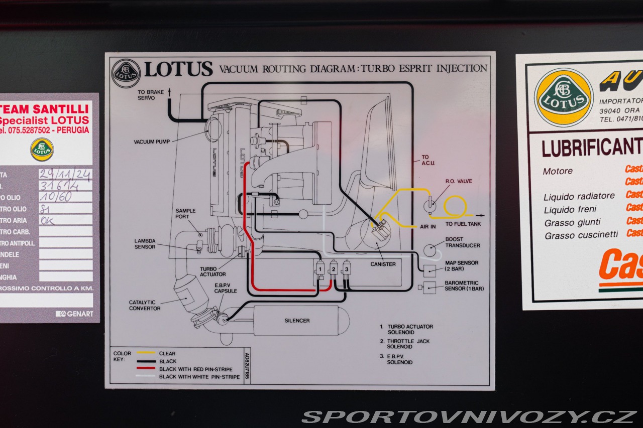 | Doplňující popis: | Intern code: RDS01630 / Price in EUR. We offer logistics and home delivery service. La Espirit fu disegnata da Giugiaro nel 1972 e protagonista al cinema con James Bond e Pretty woman. La Lotus Esprit "Turbo" 2.0 allestimento SE (special Equipent) monta un motore 4 cilindri in linea da 2.0 litri turbocompresso, con 243 CV (179 kW), capace di raggiungere i 263 km/h e un'accelerazione da 0 a 100 km/h in circa 5,4 secondi. Questa vettura fu prodotta dal 1991 al 1993. La vettura in oggetto è stata prodotta il 26 novembre del 1991. Importata da Autoexpo, importatore Lotus per Italia. Immatricolata nel 1992.Dotata di High Wing (alettone alto) colore calypso red e interni in pelle Magnolia. N 5 delle 13 prodotte di questo colore. Accessoriata con tetto in cristallo (rimovibile). Originale in Tutto. A.S.I. targa oro n 59196. | |