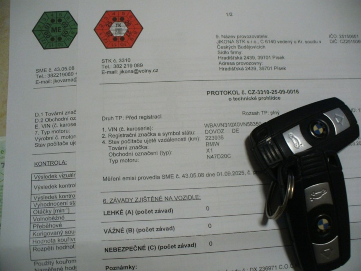 Doplňující popis: | První majitel, TEL: 603871527 OKR: PÍSEK Prodám BMW X1 sDrive 2.0diesel, 130kW., 3/2011, 1.majitel, servisní kniha do 190tis.km. Výbava: 8x airbag, kožené provedení, automatická klimatizace, navigace, zadní kamera, přední a zadní senzory, ABS, ESP, dešťový senzor, ostřikovače světlometů, vyhřívaná přední sedadla, 4X elektrická okna, elektricky ovládaná zrcátka, tažné zařízení, atd... Dovoz SRN, pouze přihlásit za 800, -Kč. Nová technická a emise do 8/2027. Nehavarované-originální a perfektní stav. VIN: WBAVN310X0VN58350. Cena: 163 000, -Kč. Tel.: 704 322 252, | |