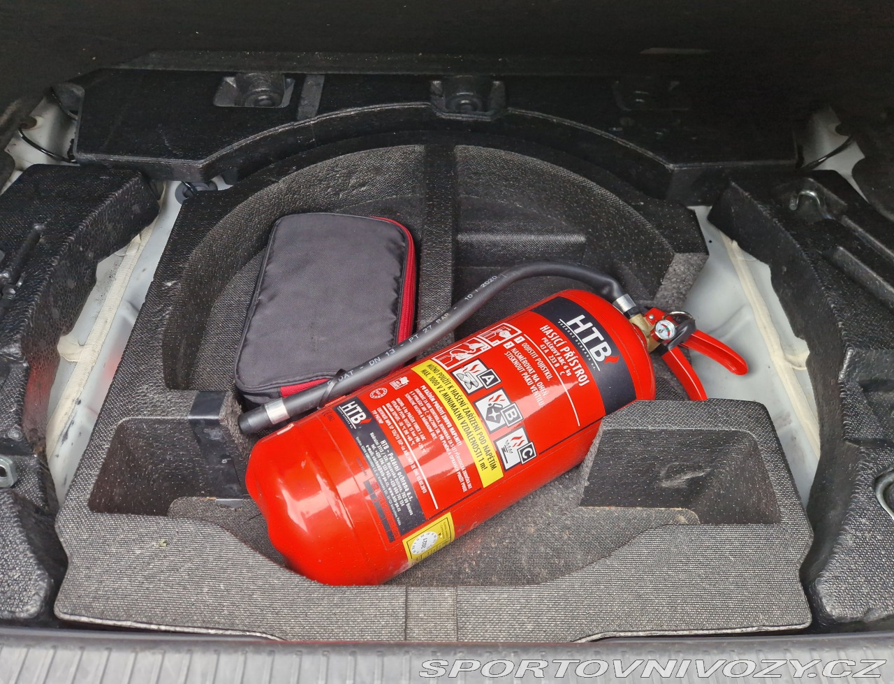 V kufru je pěnová forma upravena na 6kg hasicí přístroj, který je součástí prodeje.