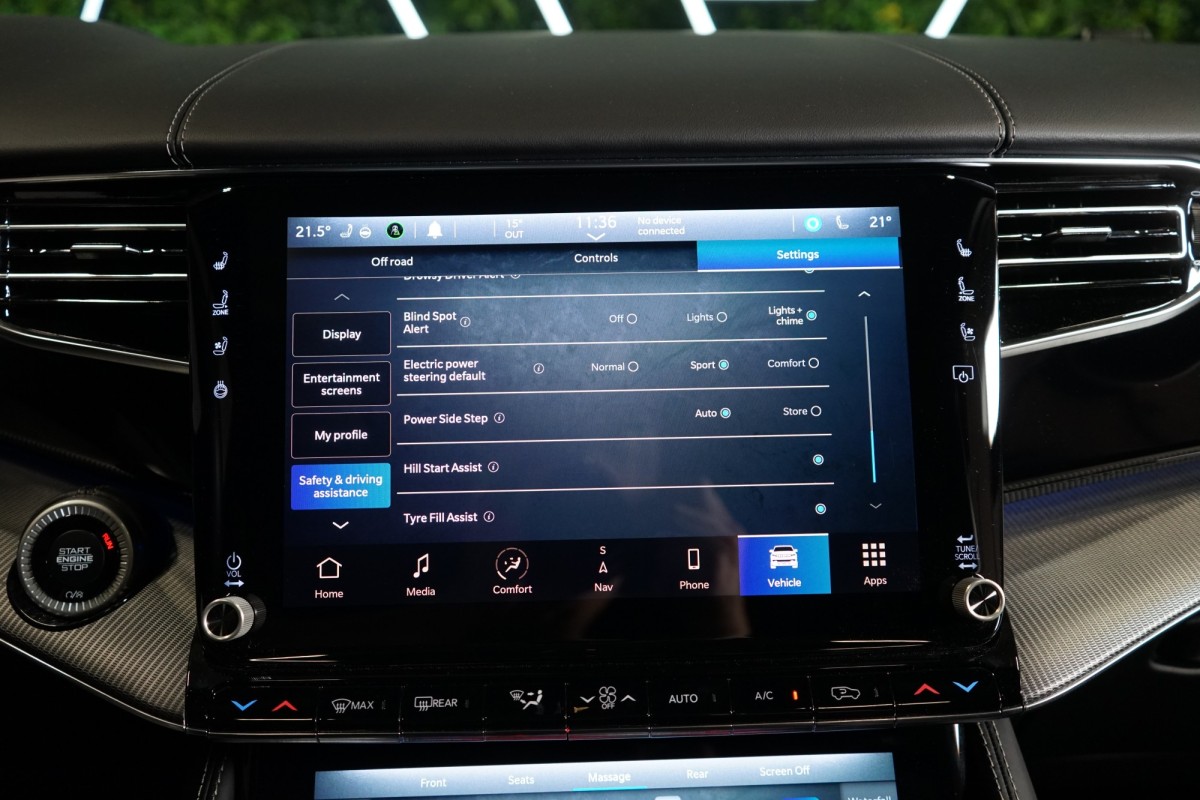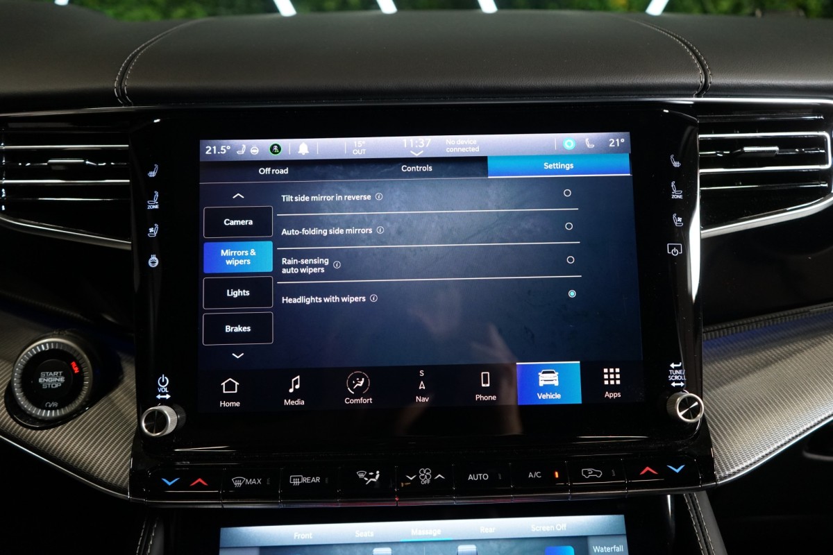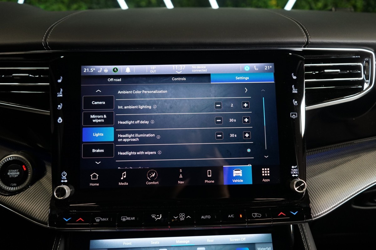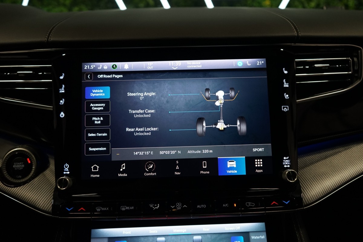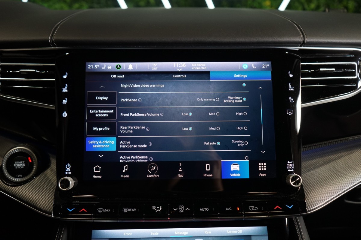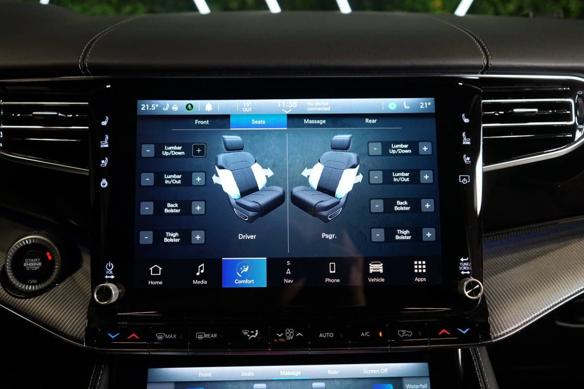 Nadstandardní výbava: | 360° monitorovací systém (AVM), adaptivní regulace podvozku, parkovací kamera, adaptivní tempomat, ABS, ambientní osvětlení interiéru, Android Auto, asistent jízdy v jízdním pruhu, asistent jízdy v koloně, asistent rozjezdu do kopce (HSA), asistent změny jízdního pruhu, aut. aktivace výstražných světlometů, stabilizace podvozku (ESP), protiprokluzový systém kol (ASR), brzdový asistent, aut. zabrzdění v kopci, parkovací senzory přední, parkovací senzory zadní, bezdrátová nabíječka mobilních telefonů, bezklíčové odemykání, senzor opotřebení brzdových destiček, senzor tlaku v pneumatikách, autorádio, bluetooth, USB, digitální příjem rádia (DAB), aut. klimatizace, dotykové ovládání palubního počítače, centrál dálkový, dělená zadní sedadla, el. dovírání dveří, el. okna, centrální zamykání, el. seřiditelná sedadla, alu kola, el. startér, el. víko zavazadlového prostoru, kožené čalounění, hands free, satelitní navigace, head-up display, hlídání jízdního pruhu, hlídání mrtvého úhlu, hlídání provozu při couvání (RCTA), isofix, klimatizovaná přihrádka, el. přední okna, senzor stěračů, LED adaptivní světlomety, LED denní svícení, automatické přepínání dálkových světel, nastavitelný volant, nouzové brzdění (PEBS), noční vidění, odvětrávaná sedadla, přední světla LED, paměť nastavení sedadla řidiče, panoramatická střecha, senzor světel, zadní světla LED, regulace tuhosti podvozku, regulace výšky podvozku, pohon 4x4, polohovací sedadla, aut. převodovka, pérování vzduch, regulace rychlosti při jízdě ze svahu, digitální přístrojová deska, digitální přístrojový štít, roletky na zadních oknech, elektronická ruční brzda, palubní počítač, sedadla s funkcí masáže - přední, venkovní teploměr, vnitřní teploměr, volba jízdního režimu, aut. stavitelný volant při nástupu, sledování únavy řidiče, multifunkční volant, posilovač řízení, řazení pádly pod volantem, start-stop systém, podélný posuv sedadel, tónovaná skla, třetí řada sedadel, ukazatel rychlostního limitu (SLIF), potahy kůže, ventilovaná zadní sedadla, bezklíčové startování, startování tlačítkem, vyhřívaná sedadla, vyhřívaná zadní sedadla, el. sklopná zrcátka, vyhřívaný volant, výsuvné opěrky hlav, výškově nastavitelná sedadla, zadní loketní opěrka, el. zrcátka, zadní stěrač, samostmívací zrcátka, záruka, čtyřzónová klimatizace, vyhřívaná zrcátka, | |