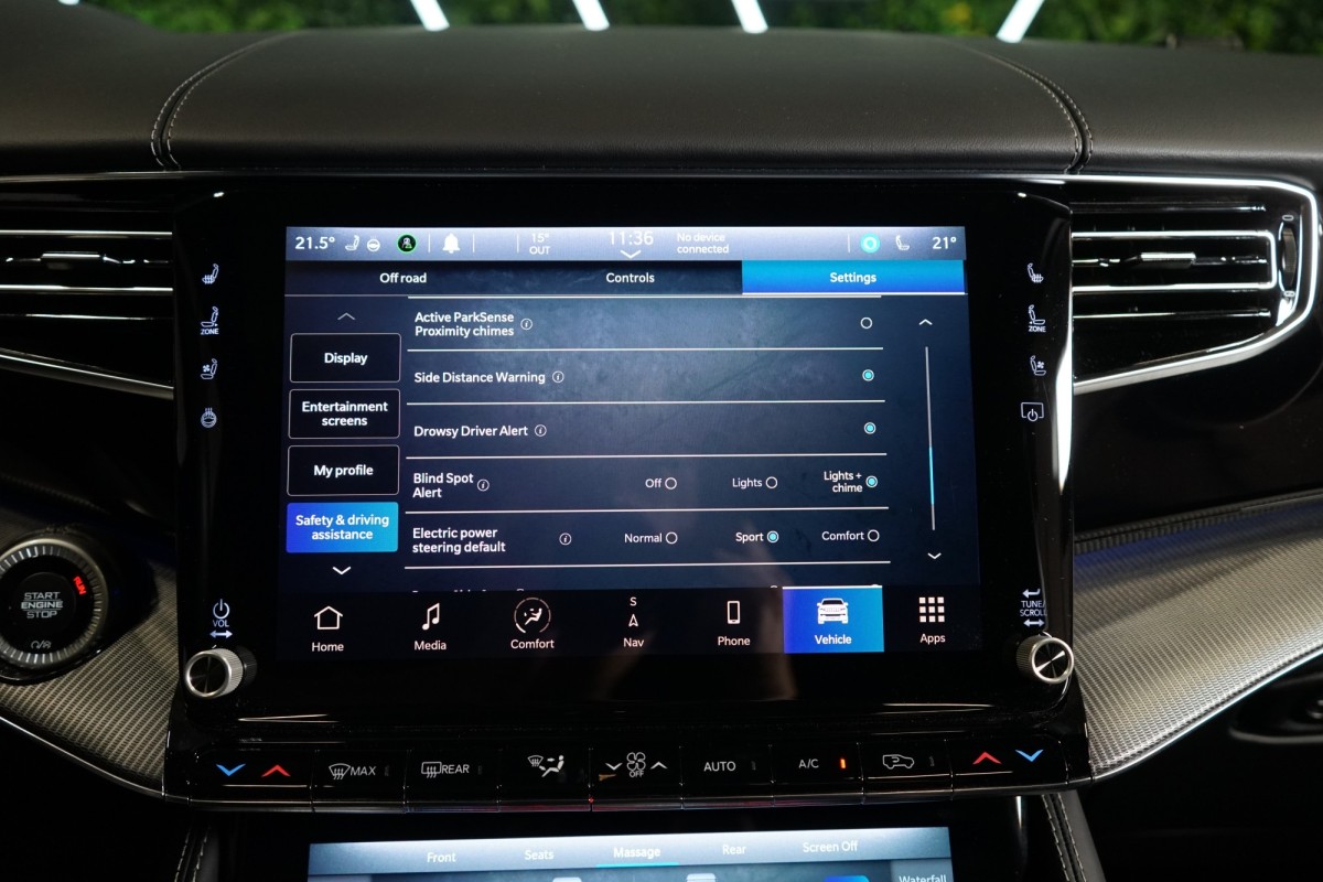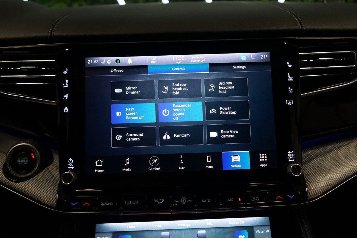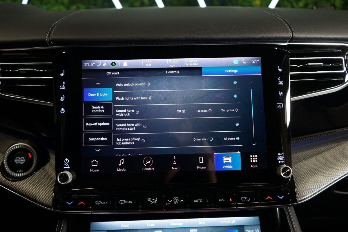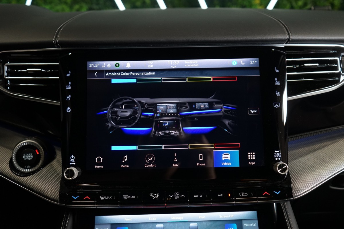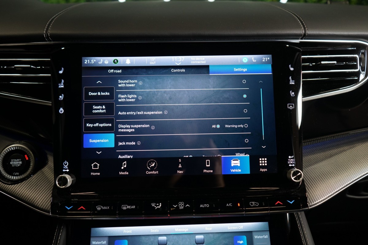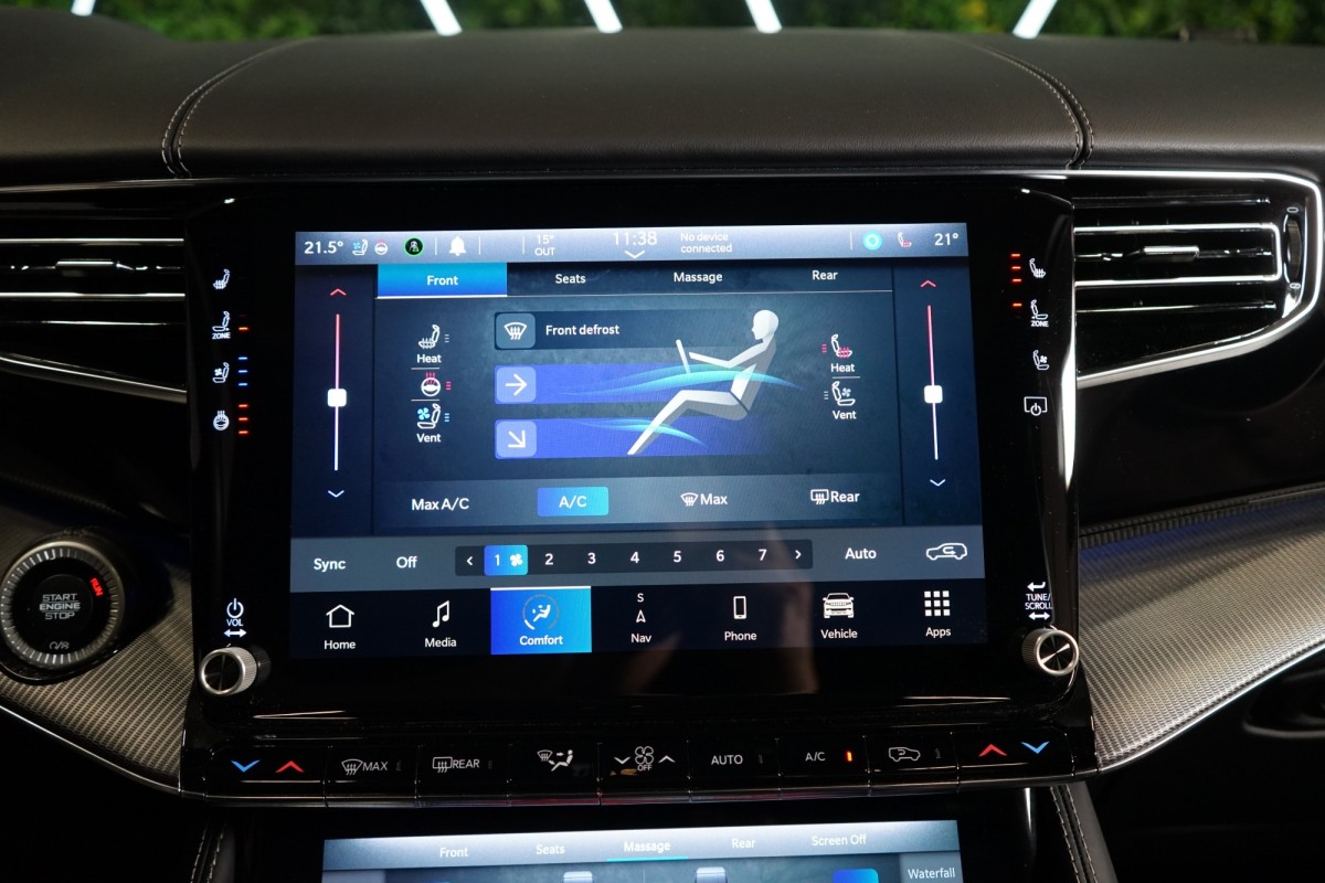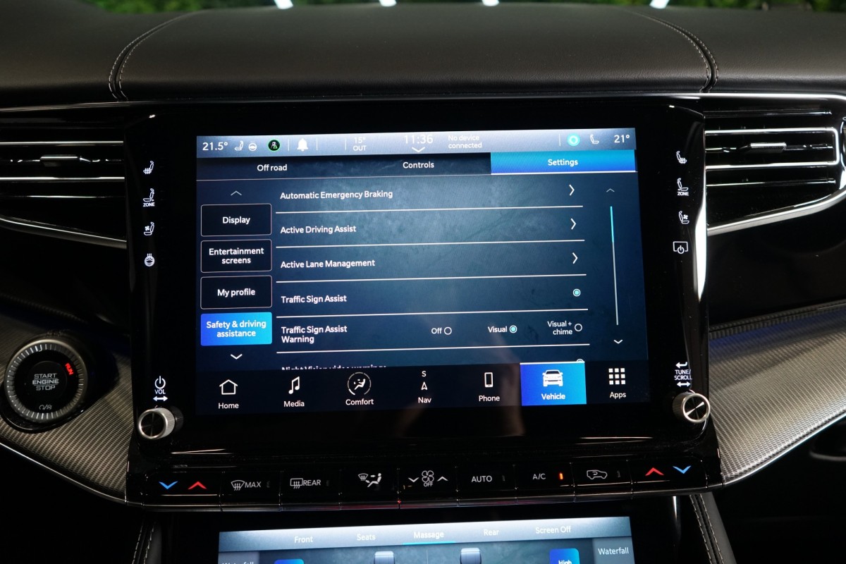 Nadstandardní výbava: | 360° monitorovací systém (AVM), adaptivní regulace podvozku, parkovací kamera, adaptivní tempomat, ABS, ambientní osvětlení interiéru, Android Auto, asistent jízdy v jízdním pruhu, asistent jízdy v koloně, asistent rozjezdu do kopce (HSA), asistent změny jízdního pruhu, aut. aktivace výstražných světlometů, stabilizace podvozku (ESP), protiprokluzový systém kol (ASR), brzdový asistent, aut. zabrzdění v kopci, parkovací senzory přední, parkovací senzory zadní, bezdrátová nabíječka mobilních telefonů, bezklíčové odemykání, senzor opotřebení brzdových destiček, senzor tlaku v pneumatikách, autorádio, bluetooth, USB, digitální příjem rádia (DAB), aut. klimatizace, dotykové ovládání palubního počítače, centrál dálkový, dělená zadní sedadla, el. dovírání dveří, el. okna, centrální zamykání, el. seřiditelná sedadla, alu kola, el. startér, el. víko zavazadlového prostoru, kožené čalounění, hands free, satelitní navigace, head-up display, hlídání jízdního pruhu, hlídání mrtvého úhlu, hlídání provozu při couvání (RCTA), isofix, klimatizovaná přihrádka, el. přední okna, senzor stěračů, LED adaptivní světlomety, LED denní svícení, automatické přepínání dálkových světel, nastavitelný volant, nouzové brzdění (PEBS), noční vidění, odvětrávaná sedadla, přední světla LED, paměť nastavení sedadla řidiče, panoramatická střecha, senzor světel, zadní světla LED, regulace tuhosti podvozku, regulace výšky podvozku, pohon 4x4, polohovací sedadla, aut. převodovka, pérování vzduch, regulace rychlosti při jízdě ze svahu, digitální přístrojová deska, digitální přístrojový štít, roletky na zadních oknech, elektronická ruční brzda, palubní počítač, sedadla s funkcí masáže - přední, venkovní teploměr, vnitřní teploměr, volba jízdního režimu, aut. stavitelný volant při nástupu, sledování únavy řidiče, multifunkční volant, posilovač řízení, řazení pádly pod volantem, start-stop systém, podélný posuv sedadel, tónovaná skla, třetí řada sedadel, ukazatel rychlostního limitu (SLIF), potahy kůže, ventilovaná zadní sedadla, bezklíčové startování, startování tlačítkem, vyhřívaná sedadla, vyhřívaná zadní sedadla, el. sklopná zrcátka, vyhřívaný volant, výsuvné opěrky hlav, výškově nastavitelná sedadla, zadní loketní opěrka, el. zrcátka, zadní stěrač, samostmívací zrcátka, záruka, čtyřzónová klimatizace, vyhřívaná zrcátka, | |