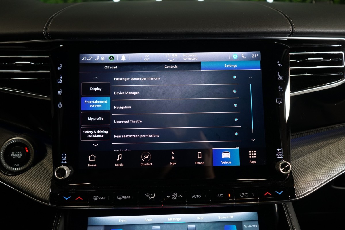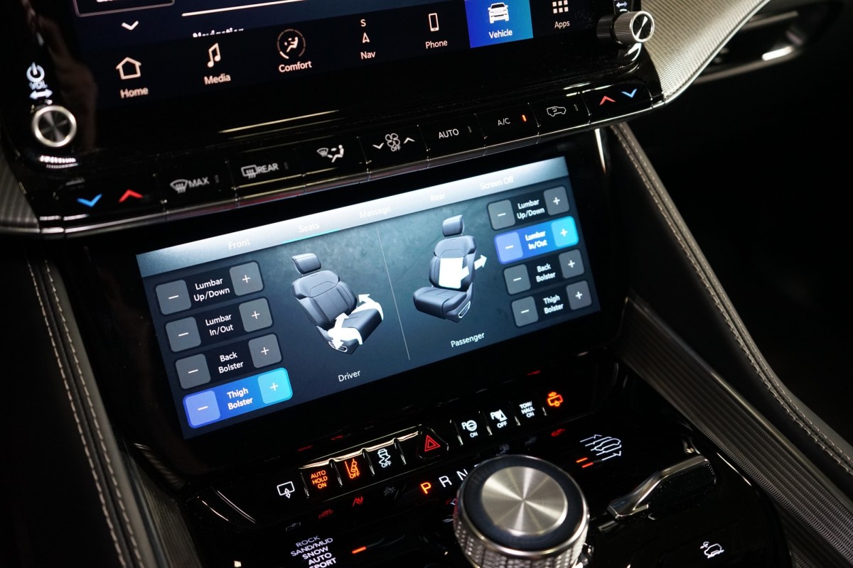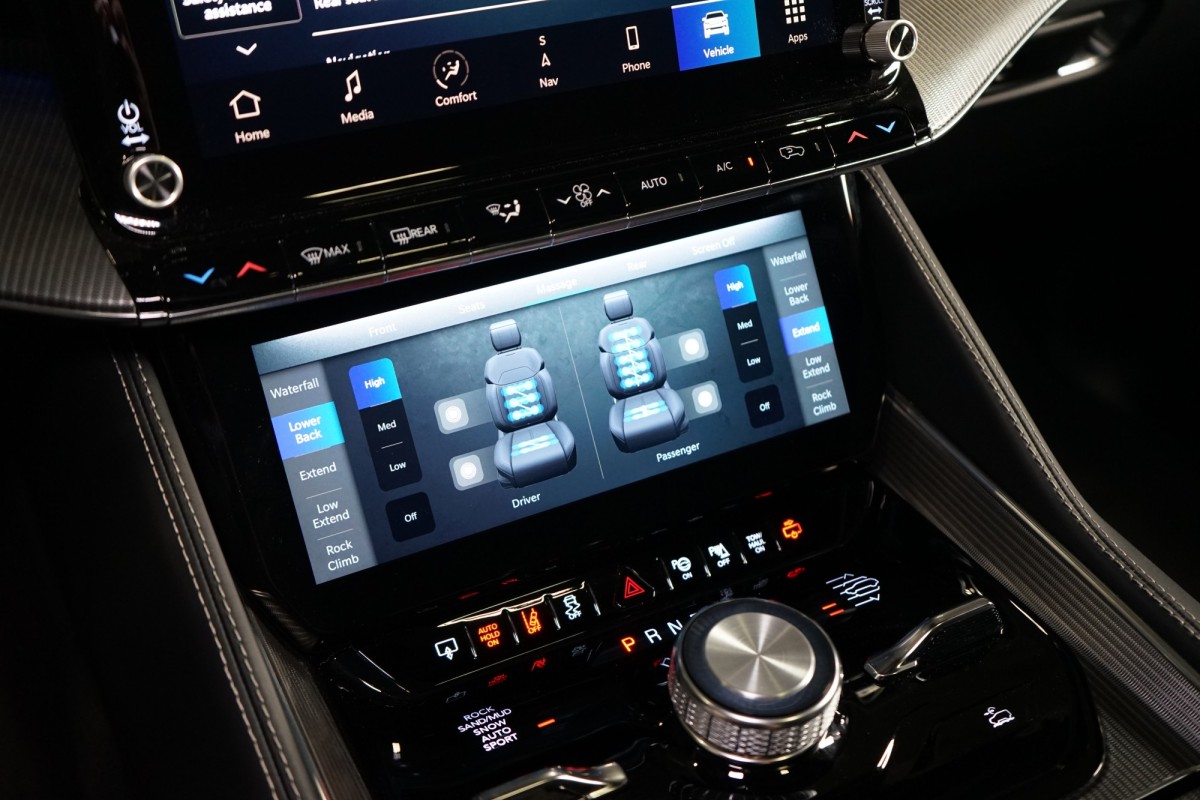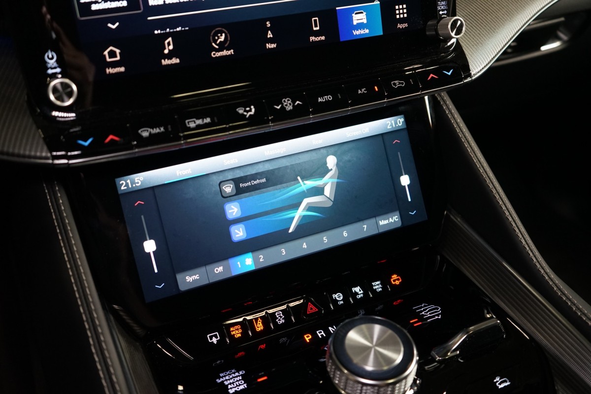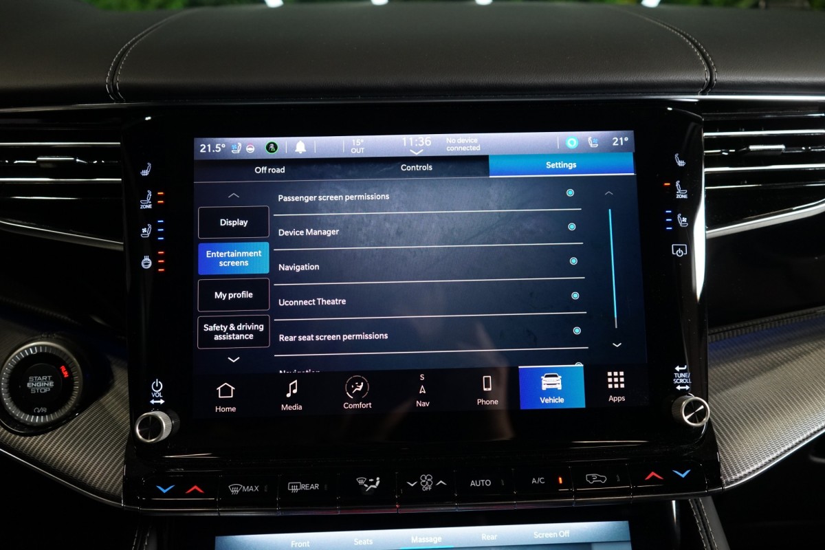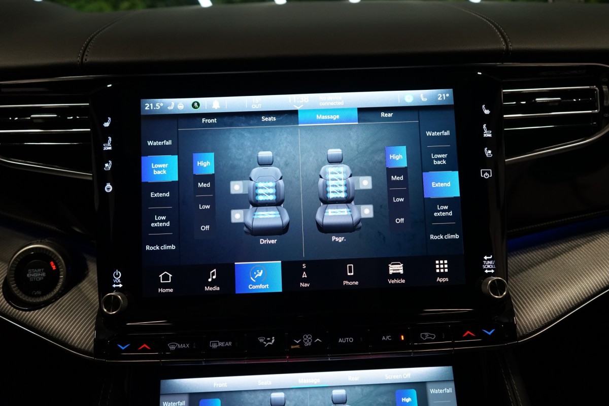 Nadstandardní výbava: | 360° monitorovací systém (AVM), adaptivní regulace podvozku, parkovací kamera, adaptivní tempomat, ABS, ambientní osvětlení interiéru, Android Auto, asistent jízdy v jízdním pruhu, asistent jízdy v koloně, asistent rozjezdu do kopce (HSA), asistent změny jízdního pruhu, aut. aktivace výstražných světlometů, stabilizace podvozku (ESP), protiprokluzový systém kol (ASR), brzdový asistent, aut. zabrzdění v kopci, parkovací senzory přední, parkovací senzory zadní, bezdrátová nabíječka mobilních telefonů, bezklíčové odemykání, senzor opotřebení brzdových destiček, senzor tlaku v pneumatikách, autorádio, bluetooth, USB, digitální příjem rádia (DAB), aut. klimatizace, dotykové ovládání palubního počítače, centrál dálkový, dělená zadní sedadla, el. dovírání dveří, el. okna, centrální zamykání, el. seřiditelná sedadla, alu kola, el. startér, el. víko zavazadlového prostoru, kožené čalounění, hands free, satelitní navigace, head-up display, hlídání jízdního pruhu, hlídání mrtvého úhlu, hlídání provozu při couvání (RCTA), isofix, klimatizovaná přihrádka, el. přední okna, senzor stěračů, LED adaptivní světlomety, LED denní svícení, automatické přepínání dálkových světel, nastavitelný volant, nouzové brzdění (PEBS), noční vidění, odvětrávaná sedadla, přední světla LED, paměť nastavení sedadla řidiče, panoramatická střecha, senzor světel, zadní světla LED, regulace tuhosti podvozku, regulace výšky podvozku, pohon 4x4, polohovací sedadla, aut. převodovka, pérování vzduch, regulace rychlosti při jízdě ze svahu, digitální přístrojová deska, digitální přístrojový štít, roletky na zadních oknech, elektronická ruční brzda, palubní počítač, sedadla s funkcí masáže - přední, venkovní teploměr, vnitřní teploměr, volba jízdního režimu, aut. stavitelný volant při nástupu, sledování únavy řidiče, multifunkční volant, posilovač řízení, řazení pádly pod volantem, start-stop systém, podélný posuv sedadel, tónovaná skla, třetí řada sedadel, ukazatel rychlostního limitu (SLIF), potahy kůže, ventilovaná zadní sedadla, bezklíčové startování, startování tlačítkem, vyhřívaná sedadla, vyhřívaná zadní sedadla, el. sklopná zrcátka, vyhřívaný volant, výsuvné opěrky hlav, výškově nastavitelná sedadla, zadní loketní opěrka, el. zrcátka, zadní stěrač, samostmívací zrcátka, záruka, čtyřzónová klimatizace, vyhřívaná zrcátka, | |