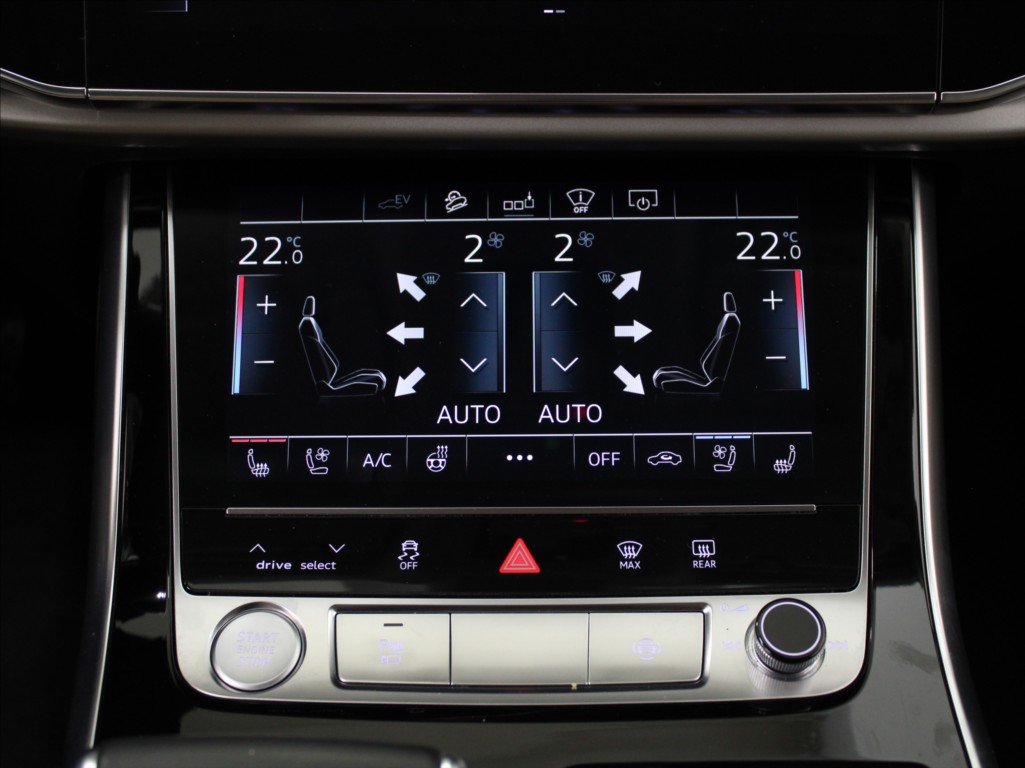 | Nadstandardní výbava: | aut. klimatizace, originál autorádio, Android Auto, Apple CarPlay, sound systém s více reproduktory, satelitní navigace, bluetooth, USB, hands free, el. okna, el. přední okna, el. zrcátka, el. sklopná zrcátka, el. víko zavazadlového prostoru, el. seřiditelná sedadla, zatmavená zadní skla, vyhřívaný volant, potahy kůže, kožené čalounění, kožená sedadla, sedadla s funkcí masáže - přední, odvětrávaná sedadla, vyhřívaná sedadla, hlídání jízdního pruhu, hlídání mrtvého úhlu, multifunkční volant, parkovací senzory přední, parkovací senzory zadní, LED matrixové světlomety, parkovací kamera, senzor stěračů, senzor světel, automatické přepínání dálkových světel, adaptivní tempomat, regulace tuhosti podvozku, regulace výšky podvozku, brzdový asistent, ABS, stabilizace podvozku (ESP), protiprokluzový systém kol (ASR), aut. převodovka, denní svícení, přední světla LED, zadní světla LED, centrál dálkový, startování tlačítkem, bezklíčové startování a odemykání, paměť nastavení sedadla řidiče, sportovní paket, ambientní osvětlení interiéru, isofix, LED denní svícení, plní 'EURO VI', digitální přístrojový štít, volba jízdního režimu, pérování vzduch, třízónová klimatizace, 360° monitorovací systém (AVM), pohon 4x4, 8x airbag, | |