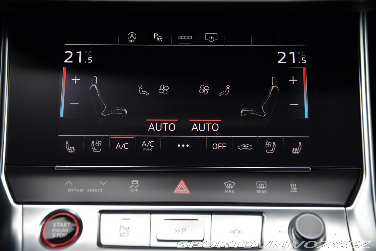 Nadstandardní výbava: | letní originál alu kola 21“- vzorek 7mm, zimní originál alu 19“ – vzorek 8mm, natáčecí zadní náprava, virtual cockpit plus, parkovací asistent včetně dálkového parkování pomocí telefonu, rozpoznávání dopravních značek, adaptivní stěrače s integrovanými ostřikovači, odkládací paket, dálkový parkovací asistent, Balíček turistických asistentů, Boční asistent včetně Audi pre sense rear, Parkovací asistent plus, Dynamické řízení, MMI Basic Plus / MMI Radio Plus, MMI Navigation Plus s MMI Touch, Soundsystém Bang & Olufsen, Soundsystém DSP, Na míru Konturová sedadla vpředu včetně paměti, Černý stylingový paket plus 9x airbag 360°(avm) abs, asr, esp, slif, hsa, rcta vybraní asistenti: jízdy v jízdním pruhu v koloně rozjezdu do kopce změny jízdního pruhu aut. zabrzdění v kopci automatické parkování brzdový hlídání jízdního pruhu mrtvého úhlu provozu při couvání nouzové brzdění parkovací kamery parkovací senzory přední + zadní senzor tlaku v pneumatikách sledování únavy řidiče ambientní osvětlení kožené čalounění android auto apple carplay bezdrátová nabíječka telefonu satelitní navigace el. okna senzor stěračů wifi automatické dálková světla led denní svícení led matrixové světlomety mlhovky natáčecí světlomety ostřikovače světlometů senzor světel zadní světla led adaptivní regulace podvozku natáčecí zadní kola pérování vzduch regulace tuhosti a výšky podvozku sportovní podvozek adaptivní tempomat pohon 4x4 digitální přístrojová deska hlasové a dotykové ovládání palubního počítače ovládání gesty palubní počítač řazení pádly pod volantem el. masážní seřiditelná vyhřívaná a ventilovaná sedadla bezklíčové startování a odemykání ...atd... | |