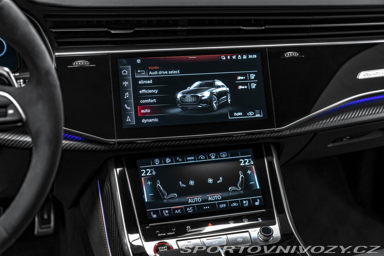 | Doplňující popis: | Vozidlo k vidění na showroomu v OLOMOUCI na adrese: Na Vlčinci 16/3, Olomouc, 77900, CZ Audi RS Q8 -Komplet PPF, s keramickou ochranou -Tlumení interiéru, dveří a motorového prostoru -Záruka do 04/2026 -Vossen kola 23" -Vozidlo v nadstandartní výbavě Výbava: 3GN – Kolejnicový systém s upevňovací sadou 3FU – Panoramatické dvoudílné střešní okno 2F1 – Audi connect klíč 1D3 – Tažné zařízení, elektricky sklopné 0P6 – RS sportovní výfukový systém 4ZP – Kruhy Audi a loga RS Q8 v lesklé černé barvě 4X9 – Boční airbagy vzadu + napínače zadních pásů 4GR – Klimakomfortní vyhřívané akustické čelní sklo 4D8 – Odvětrávání a masážní funkce vpředu 4A4 – Vyhřívání předních a zadních vnějších sedadel 3Y6 – Ochranné sluneční rolety vzadu 5MH – Dekorace matný karbon Kepr 6SJ / 6FJ – Kryty vnějších zrcátek v černé barvě 7J3 – Ochranná variabilní podložka do zavazadlového prostoru 7D5 – DVD přehrávač 8RF – Audi virtual cockpit plus H6H – Čalounění stropu z černé Alcantary GZ2 – Servomechanické dovírání dveří 9ZEGB1 – Audi phone box s bezdrátovým nabíjením 9R1 – Asistent nočního vidění KS1 – Head-up displej PCM – RS Dynamik paket plus PC9 – Brzdy RS karbon-keramické (červené třmeny) PA6 – Paket černé optiky PA3 – Asistenční paket City PEF – Paket parkovacích asistenčních systémů (360° kamery) PCV – RS červený designový paket PK6 – Sedadla RS sportovní v kůži Valcona s voštinovým prošitím PG3 – Komfortní klíč s funkcí Safelock PEH – Nezávislé topení/ventilace s dálkovým ovládáním UF8 – Dálkové ovládání garážových vrat (HomeLink) QL5 – Zatmavená skla (Privacy) PXC – Světlomety HD Matrix LED s dynamickými směrovkami PL2 – Audi music interface pro přední a zadní sedadla YTOS3G – Bang & Olufsen Advanced Sound System (3D zvuk) VW0 – Plné lakování v barvě vozu VJ3 – Dvojitá akustická skla VC2 – Audi exclusive bezpečnostní pásy Zřeknutí se odpovědnosti: Ceny a dostupnost se mohou změnit bez předchozího upozornění, výše uvedené informace mohou být nesprávné. V případě zájmu o prohlídku vozu doporučujeme si domluvit osobní schůzku. | |