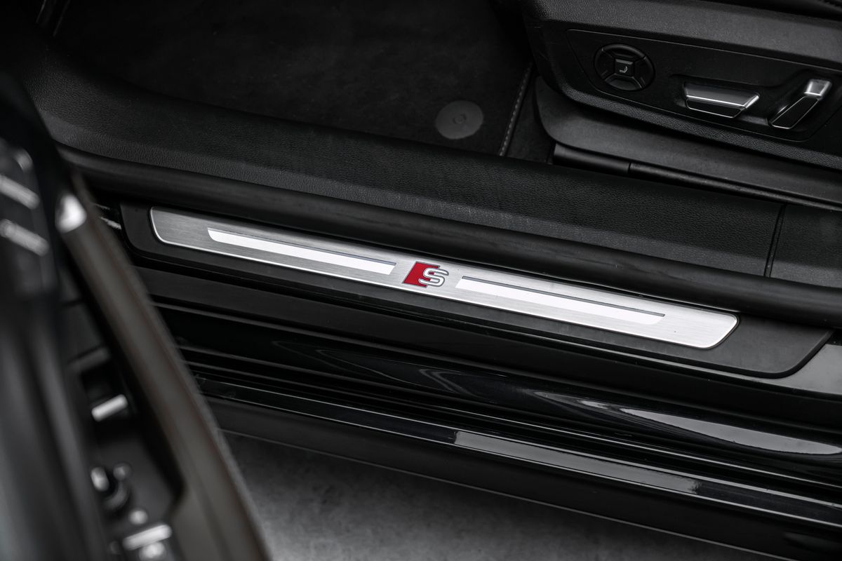 | Doplňující popis: | Ostrava, Ambientní osvětlení, paket asistenčních služeb Tour, elektricky nastavitelná, vyhřívaná a sklopná vnější zpětná zrcátka s pamětí, černé látkové čalounění stropu, zamykání kol, parkovací asistent vpředu a vzadu s akustickým a vizuálním zobrazením (APS Plus), paket exteriéru S line, asistent změny jízdního pruhu (Side Assist) včetně Audi pre sense rear, individuálně tvarovaná sedadla vpředu včetně paměti, obložení interiéru: horní a dolní prvky ze syntetické kůže, samostmívající se zpětné zrcátko, systém kontroly kvality vzduchu s ionizátorem, 4zónová automatická klimatizace, variabilně nastavitelné opěrky hlavy, elektricky nastavitelná bederní opěrka v předních sedadlech. Nastavitelná, kola z lehkých slitin 8,5x19 (vícepaprsková, kontrastně šedá, částečně leštěná/diamantově soustružená), světlomety Matrix LED, metalický lak, boční airbagy vpředu a vzadu, ventilace a masážní funkce předních sedadel, čalounění sedadel: kombinace kůže Valcona/kůže Milano, perforované s lemováním, vyhřívání předních sedadel, audiosystém Bang & Olufsen, tónovaná zadní okna (zatmavená skla), příprava pro rozhraní pro chytrý telefon. Termín prohlídky si prosím předem domluvte. Děkujeme. | |