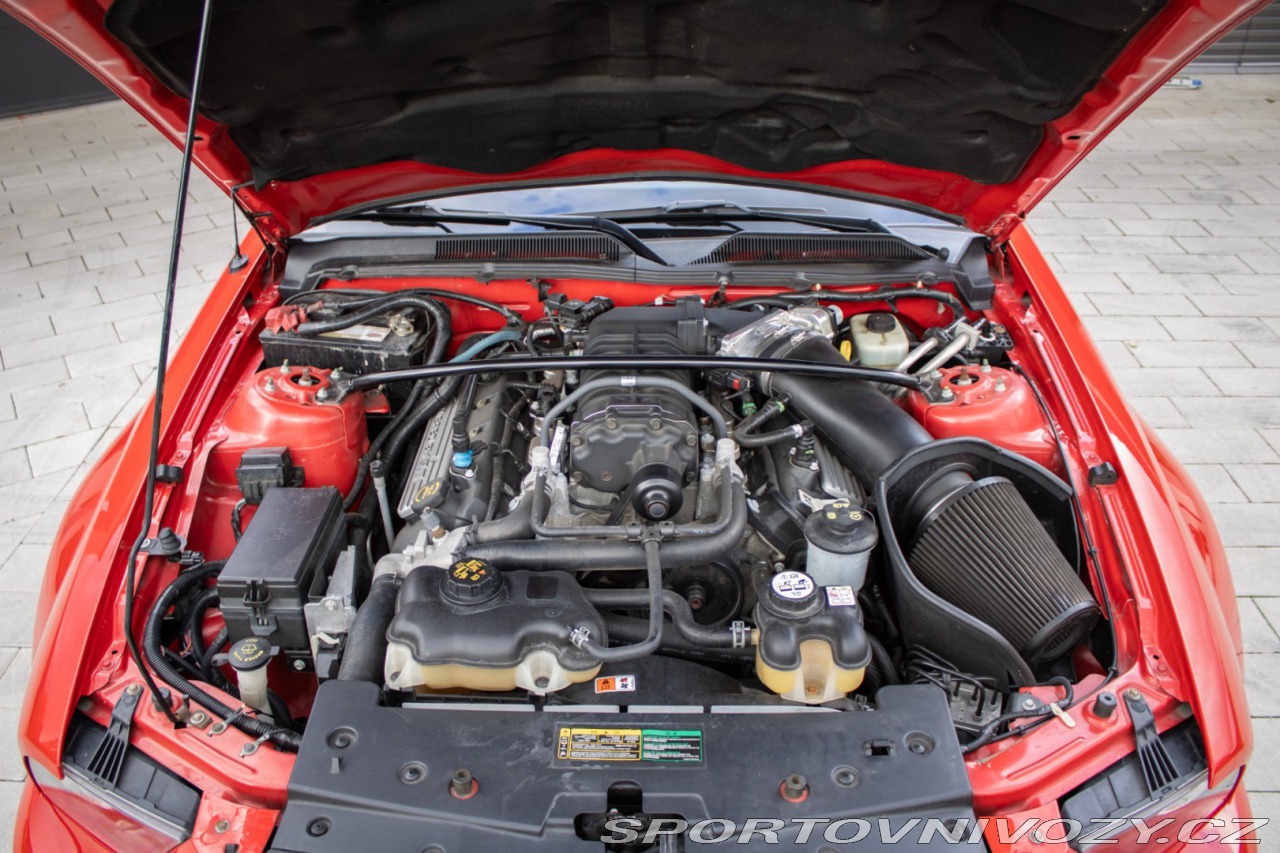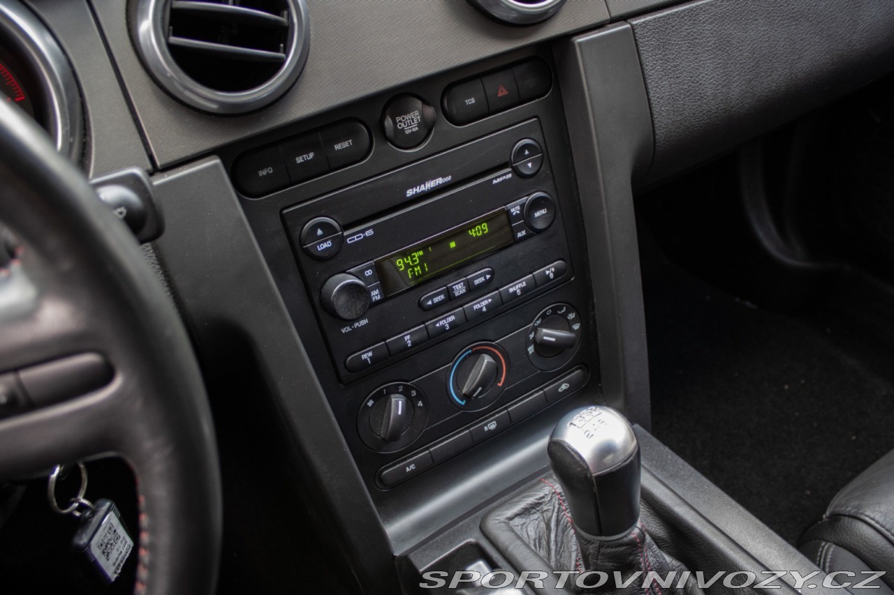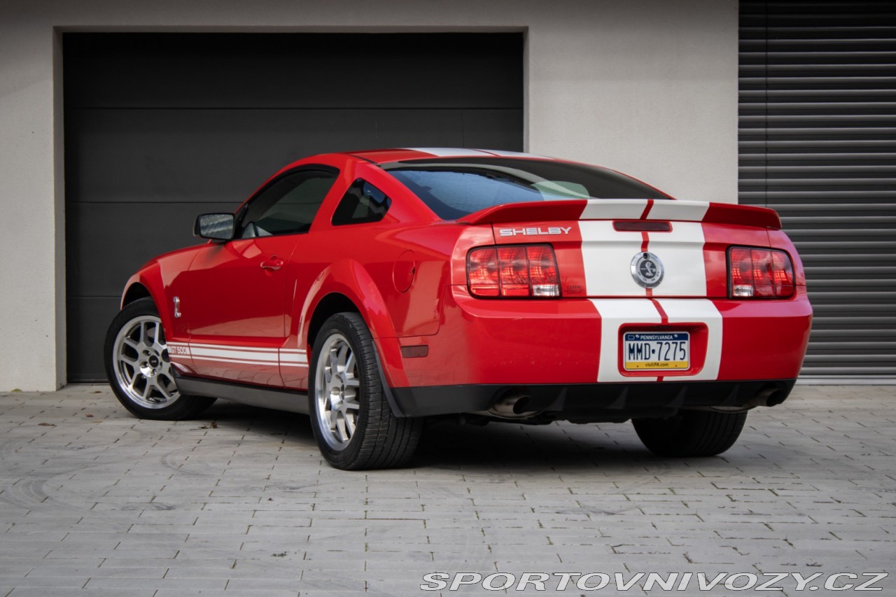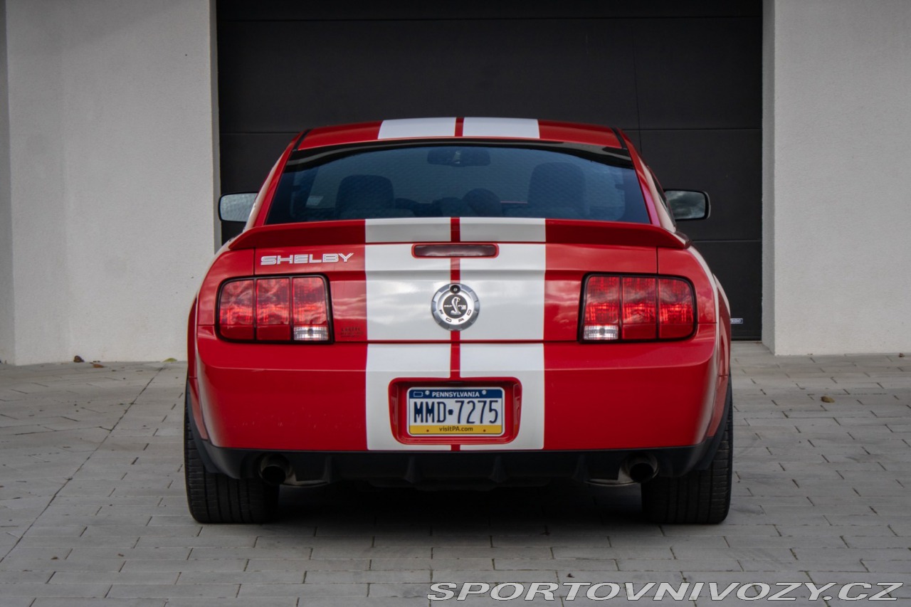 | Nadstandardní výbava: | Usporiadanie: V8 (8 valcov do V, uhol 90) Rozvod: DOHC (Double Overhead Camshafts) – 4 ventily na valec Preplňovanie: mechanický kompresor (Eaton M122 Supercharger) Krútiaci moment: približne 480 lb-ft (651 Nm) pri ~4500 rpm. Výkon: približne 500 hp (373 kW) pri ~6000 rpm. Spotreba (orientačne): kombinovaná ~12–16 mpg (záleží na štýle jazdy). Originálne 18 disky Shelby, Limitovaný sklz diferenciálu (LSD), Športový podvozok SVT, špecifické tlmiče a pružiny, Kožené športové sedačky s logom cobra, elektrické nastavenie, Originálne bodykit Shelby, predný a zadný nárazník, zadný spojler, prahové lišty, Trakčný systém TCS Výbava: ABS, Airbagy, Airbagy - počet, Alarm, Centrálne zamykanie, EBD, Autorádio, Diaľkové ovládanie zamykania, Elektrické okná, Klimatizácia, Kožený interiér, Kožený paket, Lakťová opierka, Multifunkčný volant, Palubný počítač, Hliníkové disky, Hmlovky | |