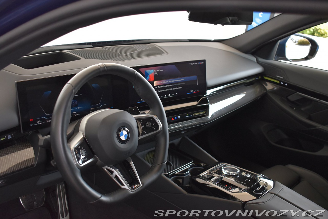 | Nadstandardní výbava: | Osobní karta eSIM (integrace vozu do digitálního ekosystému zákazníka), Česká jazyková verze, M sportovní paket, M sportovní paket - exteriér, M sportovní paket - interiér, M sportovní paket Pro, Paket Comfort, Paket Connected Professional, Paket Innovation, Paket Travel, Specifická výbava pro M sportovní paket Pro, Travel & Comfort System, Metalický lak Phytonic Blue, 20 M aerodynamická kola z lehké slitiny 939 M Bicolour Black/Grey, Bezpečnostní šrouby kol, M sportovní brzdy s červenými třmeny, Sada na opravu pneumatik, M čalounění stropu v barvě antracitu, Obložení interiéru Carbon Fibre s akcenty v provedení Dark Silver M, 7stupňová dvouspojková automatická převodovka Steptronic včetně řadicích pádel na volantu, Mild hybridní technologie, Alarm, COC Zusatzumfänge (Doplňkové položky (výbavy) uvedené v Prohlášení o shodě), Elektricky ovládané tažné zařízení, Interiérová kamera, Komfortní přístupový systém, Přihrádka pro bezdrátové nabíjení, Specifický obsah ve spojení s M sportovním paketem, Tachometr v km, M sportovní kožený volant, Vyhřívání volantu, BMW Individual kůže Merino Black / Atlas Grey (černá / šedá), Skleněné prvky interiéru "CraftedClarity", BMW Iconic Glow exteriérový paket, M Shadowline černé vysoce lesklé okenní lišty, M Shadowline černé vysoce lesklé okenní lišty s rozšířeným obsahem, Active Guard, Aktivní ochrana chodců, BMW Intelligent Emergency Call - tísňové volání (manuální / automatické volání v případě nouze), M bezpečnostní pásy, Parking Assistant Professional, Ukazatel tlaku v pneumatikách, Varovný trojúhelník a lékárnička, Adaptivní LED světlomety včetně LED světel pro odbočování a BMW Selective Beam, Adaptivní LED světlomety včetně neoslňujícího asistenta dálkových světlometů BMW Selective Beam, M Shadowline zatmavené světlomety, 4-zónová automatická klimatizace, Nezávislé topení, Zvýšená protisluneční ochrana oken (od B-sloupku), BMW Natural Interaction ovládání gesty, Driving Assistant Professional, Aktivní ventilace předních sedadel, Nastavení sedadel, elektrické s pamětí pro sedadlo řidiče, Vyhřívání sedadel vpředu a vzadu, BMW Live Cockpit Professional, ConnectedDrive Services - přístup na Online portál a integrace aplikací, Teleservices - manuální/automatické zasílání informací o stavu vozu a úrovni nabití baterie, DAB tuner (digitální příjem rádia), HiFi loudspeaker system Harman Kardon, DAB tuner (digitální příjem rádia), DAB tuner (digitální příjem rádia), Chladicí médium, Emisní norma EU6 RDE II, Manuál a servisní knížka v ČJ, Repair Inclusive - 3 roky / 200 000 km, Service Inclusive - 5 let / 100 000 km, Servisní interval pro výměnu oleje – 24 měsíců / 30 000 km, M sportovní podvozek | |