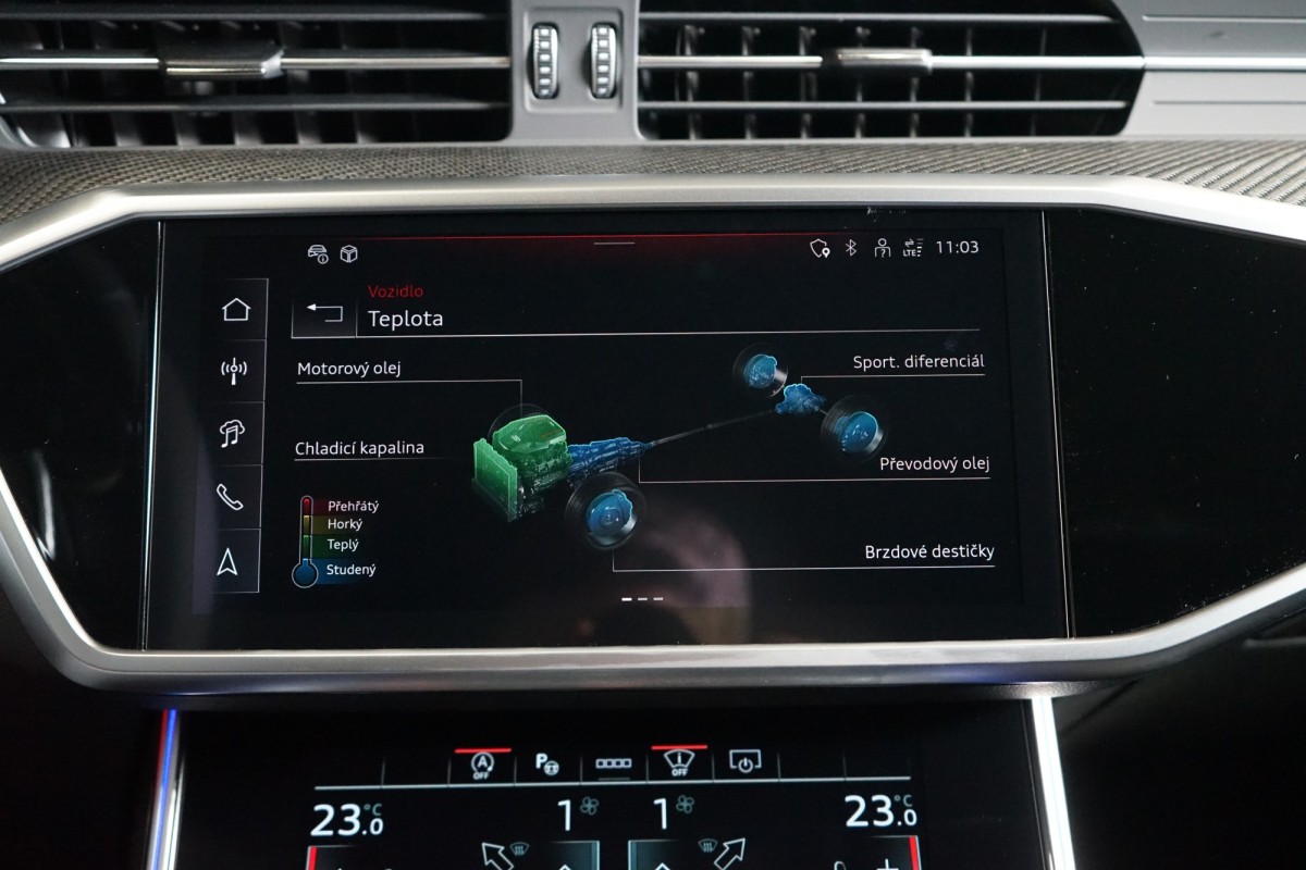 | Doplňující popis: | AS251436 Záruka: Prodloužená záruka na 4 roky / 200 000 km. Výbava: Barva: Merlin fialová, metalický lak, 22 litá kola, 5paprskový Y design, matně černá, Čalounění: Sedadla RS sportovní vpředu v perforované kůži Valcona s voštinovým prošitím, Dekorace z karbonu Kepr Struktur, Akční paket Technology, Asistenční paket Plus, Audi connect klíč, Audi obchod s aplikacemi a Audi smartphone interface, Audi phone box, Audi virtual cockpit plus s dalším RS zobrazením, Boční airbagy vzadu a osvětlené spony bezpečnostních pásů, Head,up displej, Kruhy Audi a loga RS 6 v lesklé černé barvě, Nezávislé topení/ventilace s dálkovým ovládáním, Paket černé optiky, Panoramatické střešní okno, Prvky interiérové výbavy vrchní a spodní v kůži, RS sportovní kožený vyhřívaný volant, perforovaný, RS sportovní podvozek s Dynamic Ride Control, RS sportovní výfukový systém, Servomechanické dovírání dveří Soft,Close, Světlomety HD Matrix LED s Audi laserovým světlem, Elektricky ovládané tažné zařízení, USB porty s nabíjecí funkcí pro zadní sedadla, Vnější zpětná zrcátka elektricky nastavitelná, vyhřívaná a sklopná, Vyhřívání předních a zadních sedadel, Zatmavená skla, Odvětrávaná přední sedadla, Brzdové třmeny v černé barvě, Promítání skrze dveře, Elektricky ovládaná přední sedadla s paměťovou funkcí, Ambientní osvětlení, Bang & Olufsen Premium Sound System s 3D ozvučením, Volič jízdních režimů Audi Drive Select, ISOFIX, Zadní loketní opěrka, Elektricky ovládané víko kufru, 4zónová automatická klimatizace, USB,C, Automatická převodovka, Senzor světel, Dešťový senzor, Bluetooth, Adaptivní tempomat, Audi Virtual Cockpit, Výstraha vzdálenosti, Výstraha změny jízdního pruhu, Asistent křižovatky, Asistent nouze, Asistent vystupování, Satelitní navigace, Přední a zadní parkovací senzory, 360 parkovací kamera | |