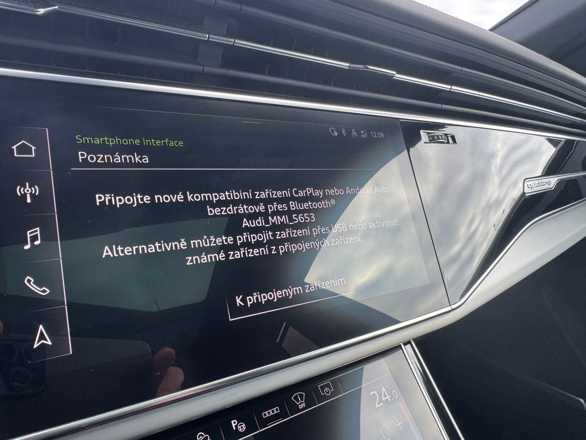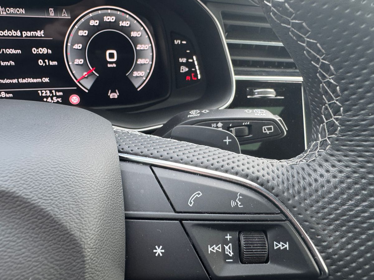 | Nadstandardní výbava: | bluetooth, senzor tlaku v pneumatikách, hlídání mrtvého úhlu, senzor opotřebení brzdových destiček, elektronická ruční brzda, imobilizér, bezklíčové odemykání, bezklíčové startování, start-stop systém, palubní počítač, USB, satelitní navigace, digitální přístrojový štít, dotykové ovládání palubního počítače, autorádio, Apple CarPlay, multifunkční volant, vyhřívaný volant, nastavitelný volant, klimatizovaná přihrádka, roletky na zadních oknech, zadní loketní opěrka, výškově nastavitelné sedadlo řidiče, výškově nastavitelná sedadla, vyhřívaná sedadla, sedadla s funkcí masáže - přední, odvětrávaná sedadla, sportovní sedadla, isofix, el. seřiditelná sedadla, zadní stěrač, denní svícení, zadní světla LED, automatické přepínání dálkových světel, mlhovky, alu kola, el. zrcátka, vyhřívaná zrcátka, el. sklopná zrcátka, senzor stěračů, el. přední okna, el. okna, tónovaná skla, el. víko zavazadlového prostoru, el. dovírání dveří, centrální zamykání, řazení pádly pod volantem, pérování vzduch, panoramatická střecha, čtyřzónová klimatizace, centrál dálkový, dělená zadní sedadla, head-up display, adaptivní tempomat, 360° monitorovací systém (AVM), parkovací senzory zadní, tažné zařízení, venkovní teploměr, stabilizace podvozku (ESP), protiprokluzový systém kol (ASR), pohon 4x4, aut. převodovka, plní 'EURO VI', asistent jízdy v jízdním pruhu, hlídání jízdního pruhu, ABS, | |