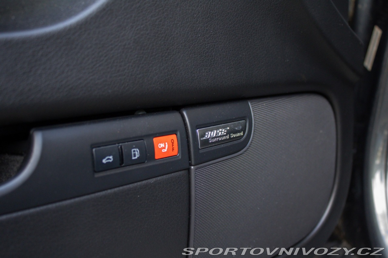 | Nadstandardní výbava: | Výbava: ABS, Alarm, Centrálne zamykanie, Deaktivácia airbagov, Adaptívny podvozok, Bezdotykové otváranie kufra, Diaľkové ovládanie zamykania, Elektrické okná, Elektrické ovládanie kufra, Kožený interiér, LED svietenie, Multifunkčný volant, Palubný počítač, Pamäťové sedačky, Parkovacie senzory, Tempomat, Vyhrievané sedačky, Vyhrievané zrkadlá, Xenónové svetlomety, Radenie pod volantom, Dažďový senzor, Hmlovky, Svetelný senzor | |