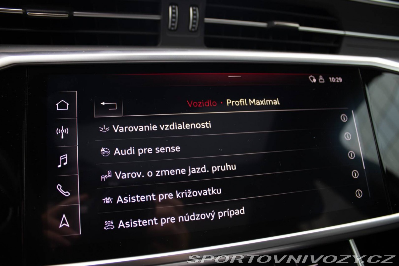 | Nadstandardní výbava: | Audi hold assist - asistent rozbehu pri stúpaní, Denné svietenie, Determálne sklá, Elektrické otváranie a zatváranie veka batožinového priestoru (len pre Limousine; Avant sériovo), Elektromechanická parkovacia brzda, Exteriérové prvky línie design: mriežka chladiča titánovočierna s chrómovým lemom a chrómovými lamelami; bočné mriežky čierne matné s hliníkovými prvkami; difúzor vzadu v titánovočiernej matnej farbe s chrómovou lištou a chrómové koncovky výfuku; ozdobná lišta vzadu prechádzajúca zadnými svetlami chrómová; chrómové lišty na vonkajších madlách dverí;, Integrálny systém hlavových opierok, Kryty vonkajších spätných zrkadiel lakované vo farbe vozidla, LED svetlomety vpredu a LED zadné svetlá, Multifunkčný kožený volant 4-ramenný s funkciou radenia, Parkovací systém plus - akustický a optický parkovací systém vpredu a vzadu, Slnečné clony s osvetlenými make-up zrkadielkami na strane vodiča aj spolujazdca, Systém monitorovania jazdného pruhu - upozornením napomáha predchádza neúmyselnému opusteniu jazdného pruhu (bez smerovky); rozpoznáva hranice jazdného pruhu; možnos nastavenia vibrácií na volante; aktívny od 60 do 250km/h, Vnútorné spätné zrkadlo s automatickou clonou, Vonkajšie spätné zrkadlá elektricky nastaviteľné a vyhrievané s integrovanými smerovkami, Vonkajšie spätné zrkadlá elektricky sklápateľné s pamä ou len s PV3 alebo PS8, Vyhrievané sedadlá vpredu a vzadu Výbava: ABS, Adaptívny tempomat, Airbagy, Airbagy - počet, Alarm, ASR, Brzdový asistent, Centrálne zamykanie, Deaktivácia airbagov, EBD, EBV, ESP, Imobilizér, Isofix, Parkovacia kamera, Systém kontroly tlaku v pneumatikách (TPMS), Asistent rozpoznávania dopravných značiek (ISLW/ISLA), Varovanie o vzdialenosti (BAS Plus), Systém rozpoznania únavy vodiča (DAW), 360° kamera, Systém tiesňového volania (e-Call), Asistent diaľkových svetiel (HBA), Autorádio, Adaptívny podvozok, Bezdotykové otváranie kufra, Bezkľúčové otváranie dverí, Bezkľúčové štartovanie, Bluetooth handsfree, Diaľkové ovládanie zamykania, Dotykový displej, Elektrické okná, Elektrické sedadlá, Elektrické zrkadlá, Elektrické ovládanie kufra, Fólie, Klimatizácia, Klimatizovaná priehradka, Kožený interiér, Kožený paket, Lakťová opierka, LED svetlomety, LED svietenie, Multifunkčný volant, Navigačný systém, Nezávislé kúrenie, Palubný počítač, Pamäťové sedačky, Parkovacie senzory, Parkovací asistent, Tempomat, Vyhrievané predné sklo, Vyhrievané sedačky, Vyhrievané zrkadlá, Vzduchové odpruženie podvozku, Vonkajší teplomer, Elektrický šíber, Apple CarPlay, Android Auto, Welcome light, Virtuálny kokpit, Radenie pod volantom, Matrix svetlá, Bezdrôtové nabíjanie pre smartphony, Ambientné osvetlenie, Asistent jazdných pruhov, Asistent rozjazdu do kopca, Dažďový senzor, Hliníkové disky, Hmlovky, Kontrola mŕtveho uhla, Ostrekovače svetlometov, Panoramatická strecha, Sezónne prezutie, Stop&start systém, Strešný nosič, Svetelný senzor, Ťažné zariadenie | |