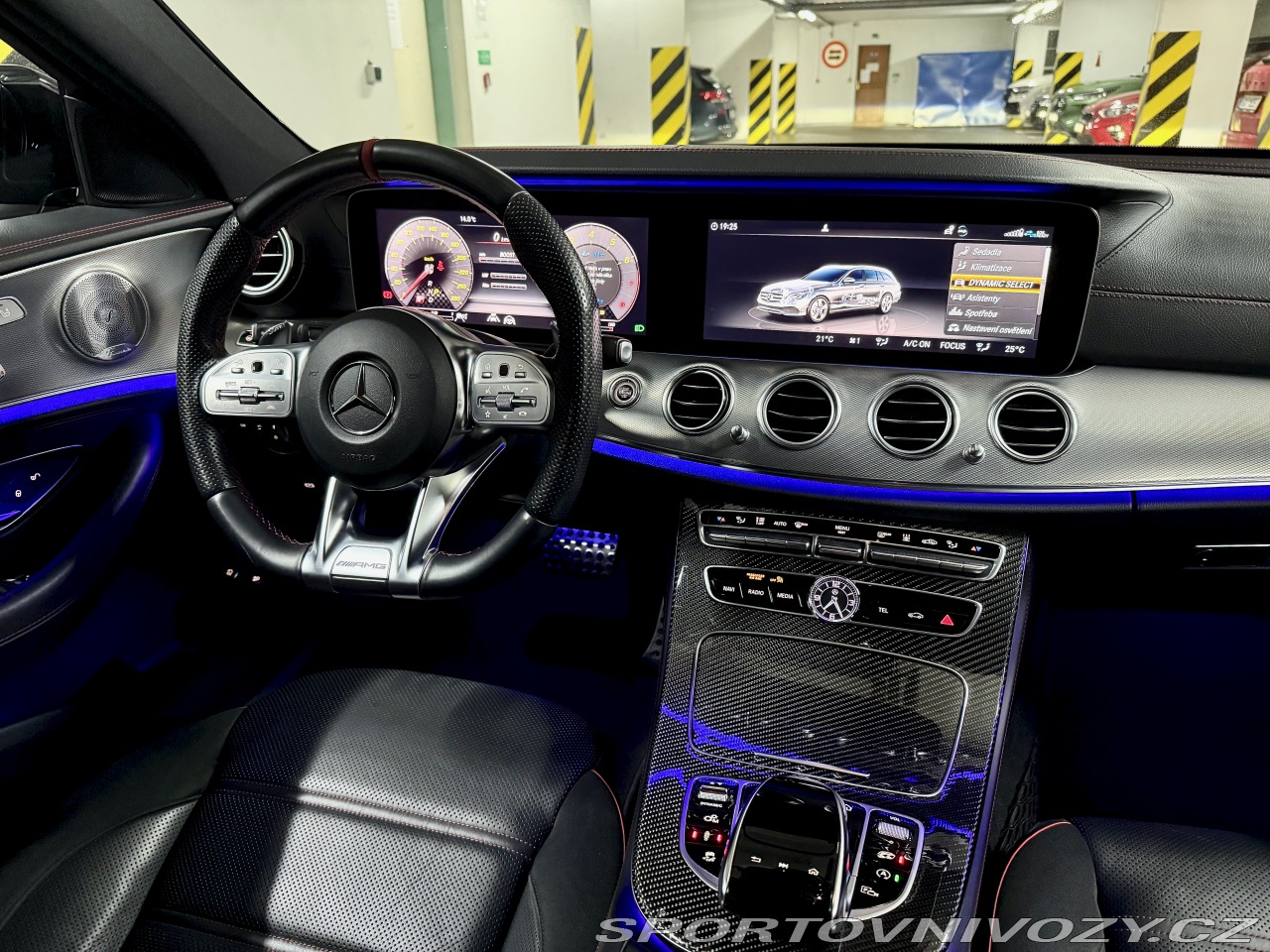 | Nadstandardní výbava: | AMG Night paket – černé lesklé lišty, černá maska Diamond, černá zrcátka, černé koncovky výfuku AMG Styling paket (přední splitter, zadní difuzor) Multibeam LED světla s adaptivním dálkovým asistentem AMG paměťové sedačky komplet v elektrice (vyhřívané + ventilované) AMG Performance volant, červené bezpečnostní pásy Prémiové ozvučení Burmester Ambientní osvětlení, Head-Up Display, karbonové obložení Panoramatické střešní okno | |