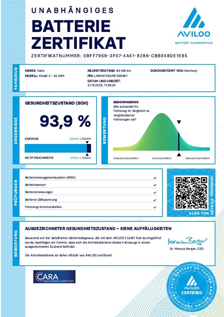 | Doplňující popis: | Tesla Model 3 Standard Range Plus 239 kW SOH 93, 9% (ODPOČET DPH) - cena uvedena vč. DPH, baterie 55 kWh - LRW3E7FA4MC339367, dovoz: Německo, elektro, do provozu: 15.9.2021, najeto: 65172 km, pohon kol: zadní, automatická převodovka, STK do: 11/2027, přední a zadní parkovací senzory, parkovací kamera, přední a zadní vyhřívaná sedadla, procesor INTEL ATOM, MATRIX SVĚTLOMETY, BOOM BOX, WLTP 491 km. Záruka na Akumulátor a hnací ústrojí 8 let nebo po ujetí 160.000 km (podle toho, co nastane dříve). *MOŽNOST VYKOUPENÍ VAŠEHO STARÉHO VOZU PROTIÚČTEM* *MOŽNOST VÝHODNÉHO FINANCOVÁNÍ už bez nulové akontace* Pro nezávaznou kalkulaci nás neváhejte kontaktovat. Nutno vždy volat předem! Prohlídky možné i mimo pracovní dobu tel. 732710796 Mates auto. Nejedná se o návrh na uzavření smlouvy (nabídku) dle § 1731 zákona č. 89/2012 Sb., občanský zákoník, ale o nezávaznou nabídku., | |