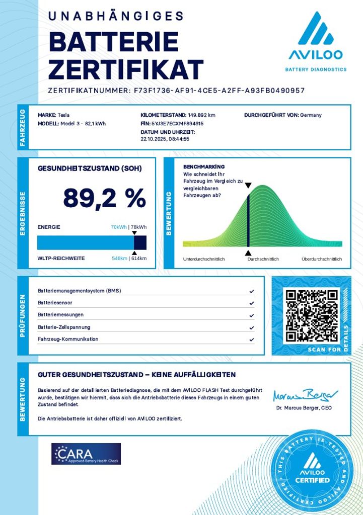 | Doplňující popis: | REZERVACE Tesla Model 3 Performance 377kW SOH 89, 2% (ODPOČET DPH) - cena uvedena vč. DPH, baterie 82, 1 kWh, dovoz: Německo, VIN: 5YJ3E7ECXMF894915, elektro, do provozu: 1.3.2021, najeto: 149925 km, pohon kol: 4x4, automatická převodovka, STK do: 12/2027, WLTP 547 km, procesor INTEL ATOM, klimatizace, parkovací kamera, přední a zadní vyhřívaná sedadla, MATRIX SVĚTLOMETY. Záruka na Akumulátor a hnací ústrojí 8 let nebo po ujetí 192.000 km (podle toho, co nastane dříve).*MOŽNOST VYKOUPENÍ VAŠEHO STARÉHO VOZU PROTIÚČTEM* *MOŽNOST VÝHODNÉHO FINANCOVÁNÍ už bez nulové akontace* Pro nezávaznou kalkulaci nás neváhejte kontaktovat. Nutno vždy volat předem! Prohlídky možné i mimo pracovní dobu tel. 732710796 Mates auto. Nejedná se o návrh na uzavření smlouvy (nabídku) dle § 1731 zákona č. 89/2012 Sb., občanský zákoník, ale o nezávaznou nabídku., | |