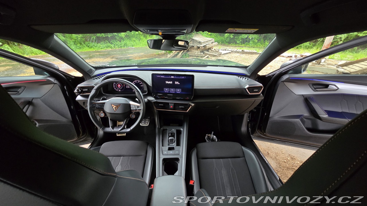 Full LED světla, automatická dálková světla, denní svícení, LED osvětlení venkovní i vnitřní, loga Cupra promítaná ze zrcátek. Osvětlené prahové lišty, wellcome light, ambient light, přísvit do zatáček,