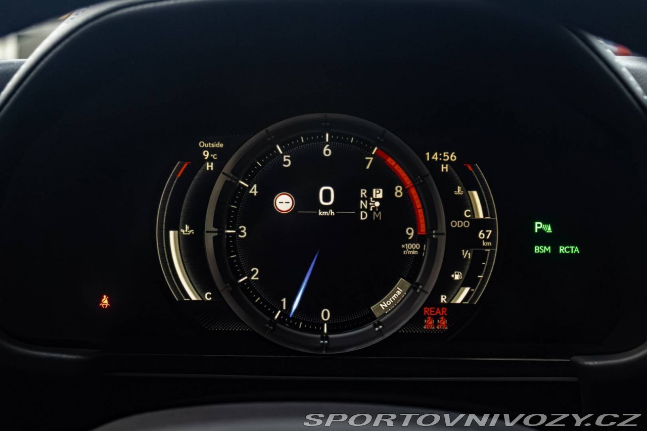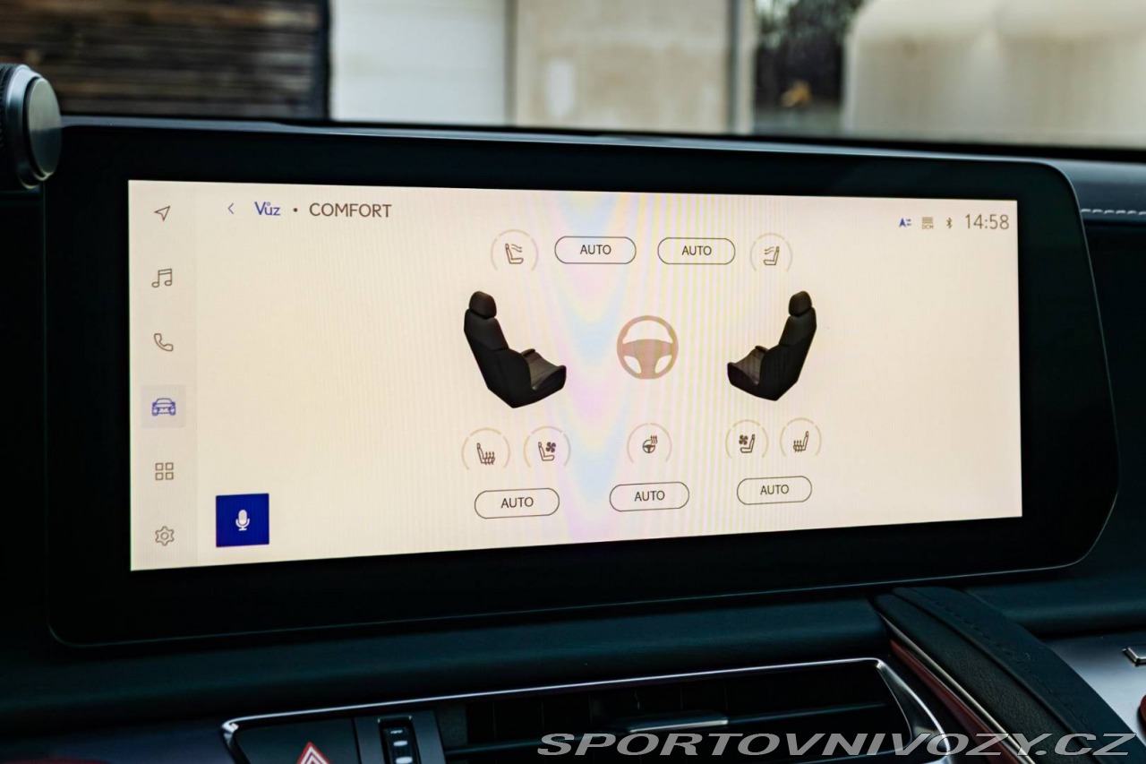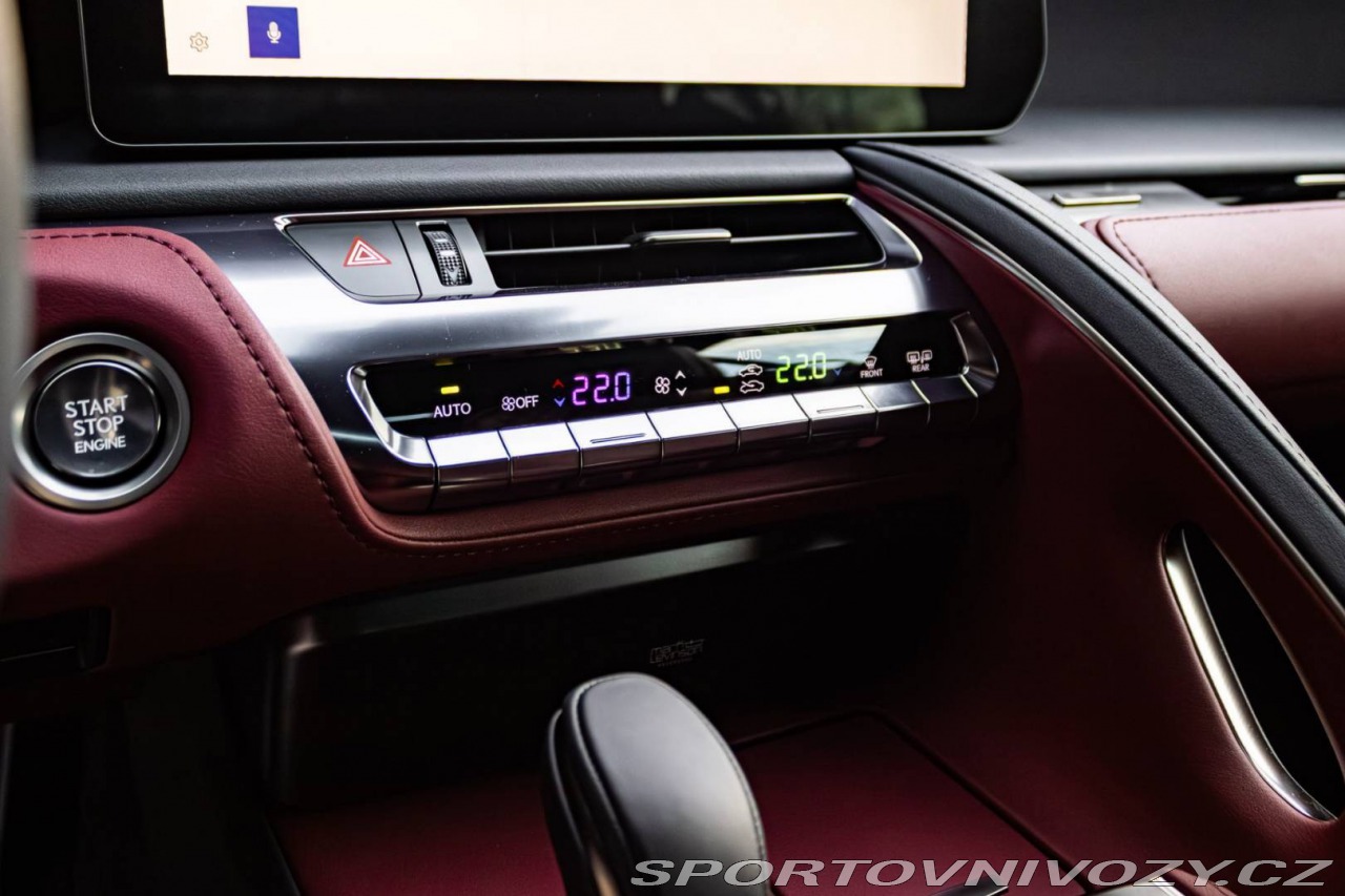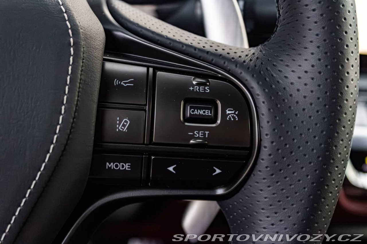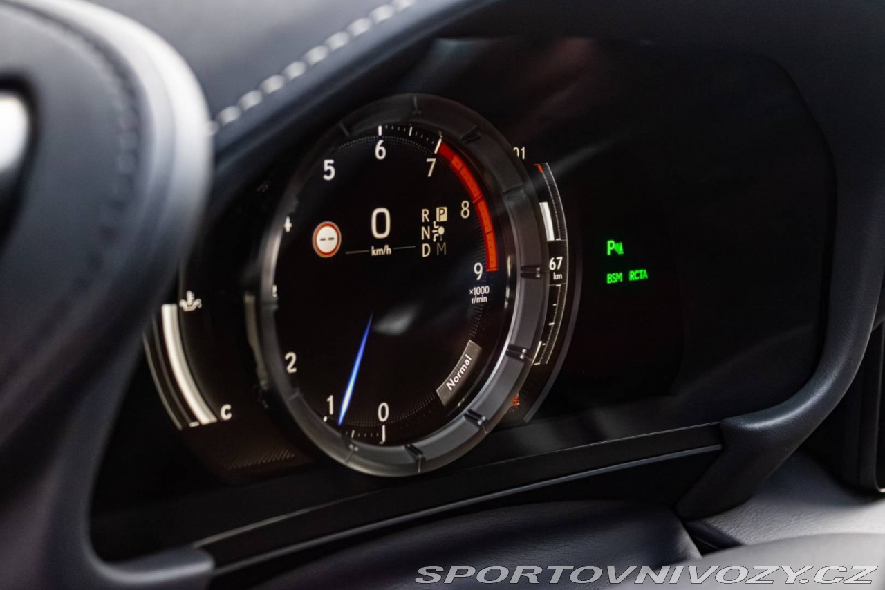 | Nadstandardní výbava: | 3 Bi-LED svetlomety, Elektricky nastaviteľné predné sedadlá (8 smerov) s elektricky nastaviteľnými bedrovými opierkami a s pamäťou pre sedadlo vodiča, Zadný diferenciál - Torsen LSD, Adaptívna tuhosť tlmičov – AVS, Asistent poloautonómnej jazdy v jazdnom pruhu (LTA), Panoramatické zobrazenie okolia – PVM, Prémiový audiosystém Mark Levinson s 13 reproduktormi, Vonkajšie spätné zrkadlá automaticky sklopné, vyhrievané a s pamäťovou funkciou, Hlasové ovládanie Hey Lexus (slovenský jazyk), Vzdialené služby Lexus Connected, Automatická dvojzónová klimatizácia s technológiou Nanoe X Výbava: ABS, Adaptívny tempomat, ADS, Alarm, ASR, Brzdový asistent, Centrálne zamykanie, Deaktivácia airbagov, DSC, EBD, EBV, ESP, Imobilizér, Isofix, Parkovacia kamera, Systém kontroly tlaku v pneumatikách (TPMS), Asistent rozpoznávania dopravných značiek (ISLW/ISLA), 360° kamera, Systém tiesňového volania (e-Call), Upozornenie premávky za vozidlom (RCTA), Asistent diaľkových svetiel (HBA), Autorádio, Adaptívny podvozok, Bezkľúčové otváranie dverí, Bezkľúčové štartovanie, Bluetooth handsfree, Diaľkové ovládanie zamykania, Dotykový displej, Elektrické okná, Elektrické sedadlá, Elektrické zrkadlá, Klimatizácia, Kožený interiér, Kožený paket, Lakťová opierka, LED svetlomety, LED svietenie, Multifunkčný volant, Navigačný systém, Odvetrávané sedadlá, Palubný počítač, Pamäťové sedačky, Parkovacie senzory, Vyhrievané predné sklo, Vyhrievané sedačky, Vyhrievané zrkadlá, Vyhrievaný volant, Vonkajší teplomer, Apple CarPlay, Android Auto, Welcome light, WLAN / Wifi Hotspot, Virtuálny kokpit, Radenie pod volantom, Asistent jazdných pruhov, Asistent rozjazdu do kopca, Dažďový senzor, Head-up display, Kontrola mŕtveho uhla, Ostrekovače svetlometov, Stop&start systém, Svetelný senzor | |