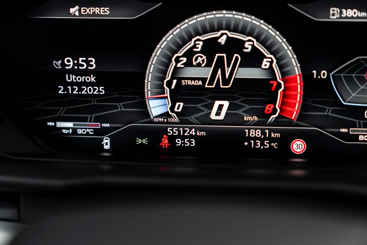 | Doplňující popis: | Bratislava, Lamborghini Urus 4.0 V8 Interiér Exkluzívny dvojfarebný interiér Rosso / Nero Štvormiestna konfigurácia s individuálnymi zadnými sedadlami a stredovou konzolou Sedadlá „Comfort Sport“ vpredu aj vzadu Masážne sedadlá (viaceré masážne programy, nastaviteľná intenzita) Elektricky nastaviteľné sedadlá s pamäťou Volant potiahnutý Alcantarou s hliníkovým spodným segmentom Kombinácia Alcantary a kože na výplniach dverí, volante a dekoračných prvkoch Kožená palubná doska s červeným kontrastným prešívaním Červené prešívanie na sedadlách, dverách a stredovej konzole Vytlačené logo Lamborghini na opierkach hlavy 4-zónová automatická klimatizácia Ambientné LED osvetlenie interiéru Zadné multimediálne displeje pre oboch pasažierov Technológie & komfort Audiosystém Bang & Olufsen Advanced 3D Sound System Duálny infotainment systém Lamborghini Touch horný displej: navigácia, médiá, nastavenia vozidla spodný displej: ovládanie klimatizácie, sedadiel a masážnych funkcií 12,3” digitálny prístrojový panel Panoramatická strecha s elektrickým zatmavovaním Bezdrôtové nabíjanie mobilného telefónu Bez kľúčové odomykanie a štartovanie Soft-Close – automatické dovieranie dverí Asistenčné systémy vodiča Nočné videnie (Night Vision Assist) – termokamera so zobrazením v prístrojovom paneli Adaptívny tempomat Asistent jazdy v pruhoch (Lane Assist) Asistent mŕtveho uhla Front Assist / Rear Assist Parkovací asistent + 360° kamera Rozpoznávanie dopravných značiek Výkon 4.0 V8 Twin-Turbo – 478 kW (650 k) 8-stupňová automatická prevodovka AWD – pohon všetkých kolies Adaptívny vzduchový podvozok Jazdné režimy Lamborghini ANIMA: STRADA SPORT CORSA SABBIA TERRA NEVE Karbón-keramické brzdy LCCB – vysoký brzdný výkon Riadenie zadnej nápravy (ak je vo výbave – potvrdenie podľa VIN) Exteriér Farba Grigio Čierne lesklé doplnky (Black Pack) Aerodynamický športový paket 22” dizajnové disky kolies Farebné brzdové strmene Tónované okná Športový výfukový systém s výrazným zvukovým prejavom | |