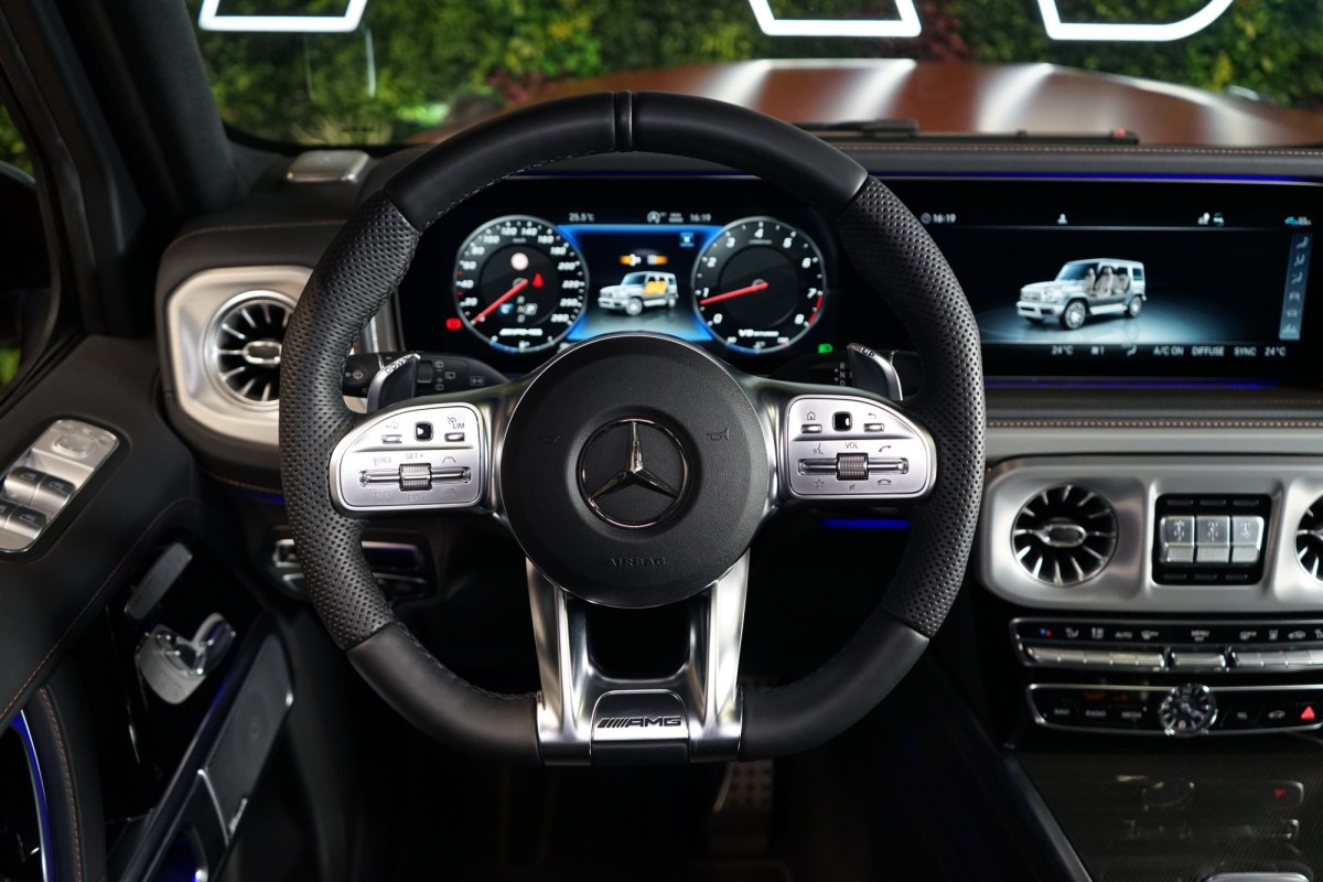 | Doplňující popis: | AS250175 Výbava: Barva: Magno oranžová copper MANUFAKTUR, 22 disky kol AMG z lehké slitiny, 5paprskové, kované, Čalounění: Kůže nappa černá s kontrastním bronzovým prošitím, Ozdobné výplně interiéru, struktura kovu, Sada Night II, Červeně lakované brzdové třmeny AMG, Automatická 9stupňová převodovka AMG SPEEDSHIFT TCT 9G, Podvozek AMG RIDE CONTROL, MULTIBEAM LED světlomety, Asistent adaptivních dálkových světel Plus, Sada Engineering, Palivová nádrž se zvětšeným objemem (100 l), Tažné zařízení s ESP pro stabilizaci přívěsu, Sada komfortních sedadel pro řidiče a spolujezdce (aktivní ortopedická sedadla s masážní funkcí), Vyhřívaná a ventilovaná přeední sedadla, Vyhřívaná zadní sedadla, Vyhřívané čelní sklo, Linie SUPERIOR interiér, Sada pro ionizování vzduchu v interiéru, Přístrojová deska čalouněná kůží nappa, Madla potažená kůží MANUFAKTUR, Čalounění stropu, mikrovlákno MICROCUT černé, Elektricky ovládané střešní okno, Sada pro ionizování vzduchu v interiéru, Ambientní osvětlení interiéru, Nezávislé topení a větrání, 3 zónová automatická klimatizace, Sportovní volant AMG Performance potažený kůží nappa, Surround soundsystém Burmester® 3D, Příprava pro multimediální systém na zadních sedadlech, Digitální přijem TV, Sada pro smartphone, Apple CarPlay, Android Auto, Digitální sdružený přístroj Widescreen Cockpit, Aktivní adaptivní tempomat DISTRONIC, Asistent dopravního značení, Aktivní brzdový asistent, Asistent sledování bdělosti, Asistent jízdy v pruzích, Asistent hlídání mrtvého úhlu, Sada pro parkování s 360° kamerou | |