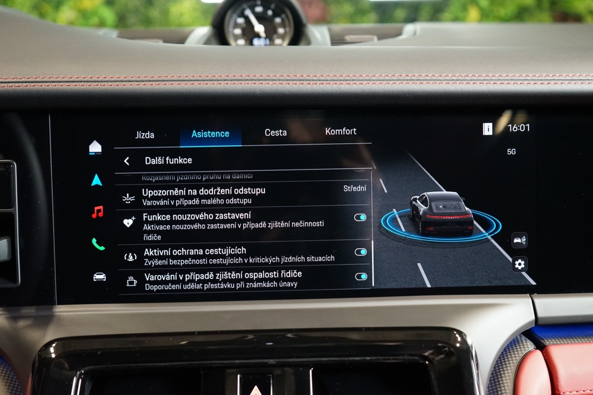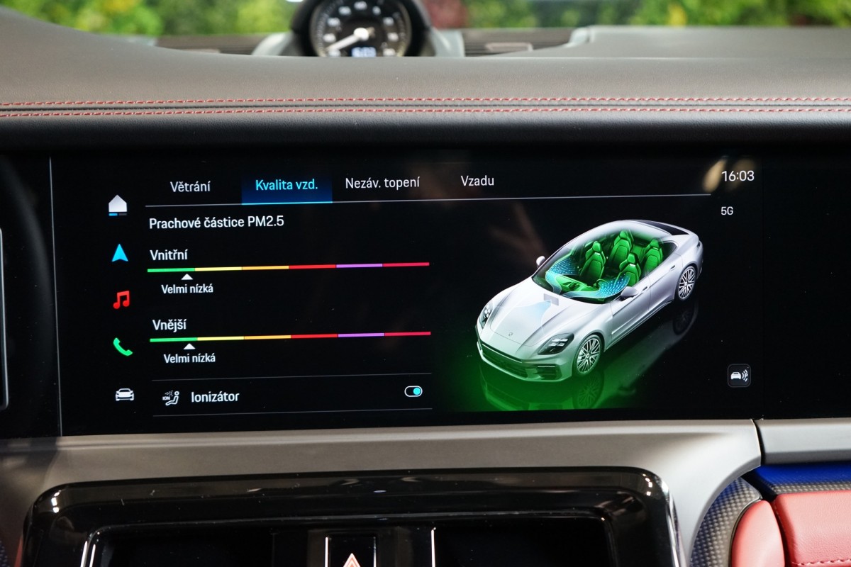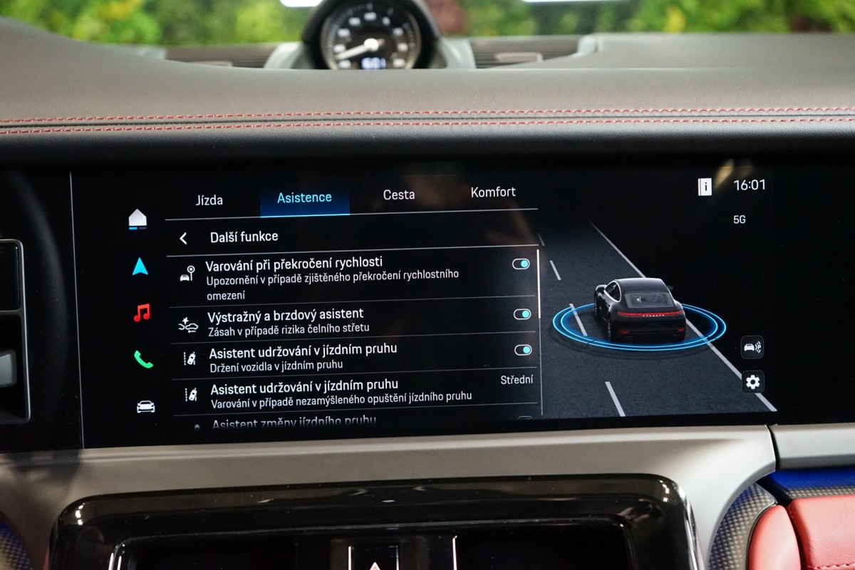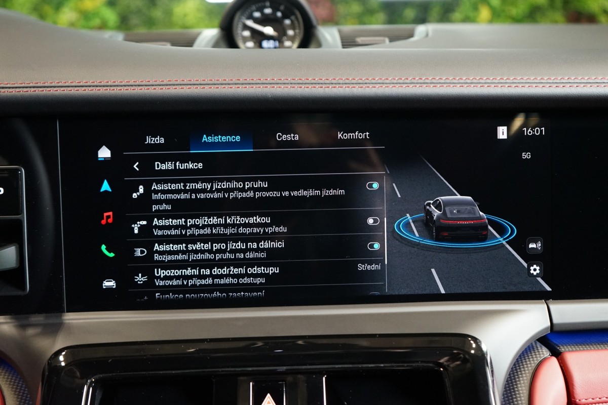 | Doplňující popis: | AS251555 Záruka: Vůz je v plnohodnotné tovární záruce na 2 roky. Výbava: Barva: Jet černá metalíza Čalounění: Dvoubarevný kožený interiér Černá/Bordeaux červená, hladká kůže 21 kola Panamera Turbo S s centrální maticí Porsche Ceramic Composite Brake (PCCB) brzdové třmeny lakované ve žluté barvě Individuální komfortní zadní sedadla (8 směrů, elektrická) s pamětí Kola lakovaná v černé barvě (vysoký lesk), Exclusive Manufaktur Vyhřívání sedadel (vzadu) Masážní funkce (vpředu a vzadu) včetně ventilace sedadel (vpředu a vzadu) SportDesign přední nárazník lakovaný v černé barvě (vysoký lesk), Exclusive Manufaktur Vnější zrcátka lakovaná v barvě exteriéru Panoramatický střešní systém Příprava pro tažné zařízení Zatmavené HD,Matrix LED světlomety Tepelně a hlukově izolovaná skla Interiérový paket Carbon matný Paket úložného prostoru Znak Porsche na opěrkách hlavy (ve spojení s komfortními polštáři na zadních sedadlech) Vyhřívaný multifunkční sportovní volant GT v kůži s matným karbonovým panelem Ochranné lišty dveřních prahů z broušeného hliníku v černé barvě, osvětlené Řízení zadní nápravy 8,stupňová Porsche Doppelkupplung (PDK) Head,Up displej Remote ParkAssist Lane Change Assist Porsche InnoDrive s aktivním udržováním v jízdním pruhu Čtyřzónová automatická klimatizace Systém kvality ovzduší Otevírání garážových vrat s HomeLink® Příprava pro Porsche palubní kameru Elektrická sluneční roleta za zadním prostorem a Elektrická sluneční roleta na zadních bočních oknech Nezávislé topení Displej spolujezdce Burmester® 3D High,End Surround Sound System Příprava pro Porsche Rear Seat Entertainment Porsche Torque Vectoring Plus (PTV Plus) Sport Chrono Paket Posilovač řízení Plus 90,litrová palivová nádrž Adaptivní vzduchové odpružení včetně Porsche Active Suspension Management (PASM), sportovní podvozek (,10 mm) Exclusive Design zadní světla Automaticky stmívaná vnější zrcátka Automaticky stmívaná interiérová a exteriérová zrcátka ParkAssist včetně Surround View Surround View with Active Parking Support Asistent parkování s automatickým řízením Rozpoznávání dopravních značek Asistent udržování jízdního pruhu Aktivní asistent rychlostního omezení Asistent varování a brzdění včetně ochrany chodců Varování a asistent brzdění Detekce pozornosti řidiče Systémy tísňového volání eCall a bCall Eletricky ovládané víko zavazadlového prostoru Porsche Entry Soft,close Paměťový paket pro řidiče a spolujezdce Přihrádka na chytrý telefon s bezdrátovým nabíjením DAB rádio | |