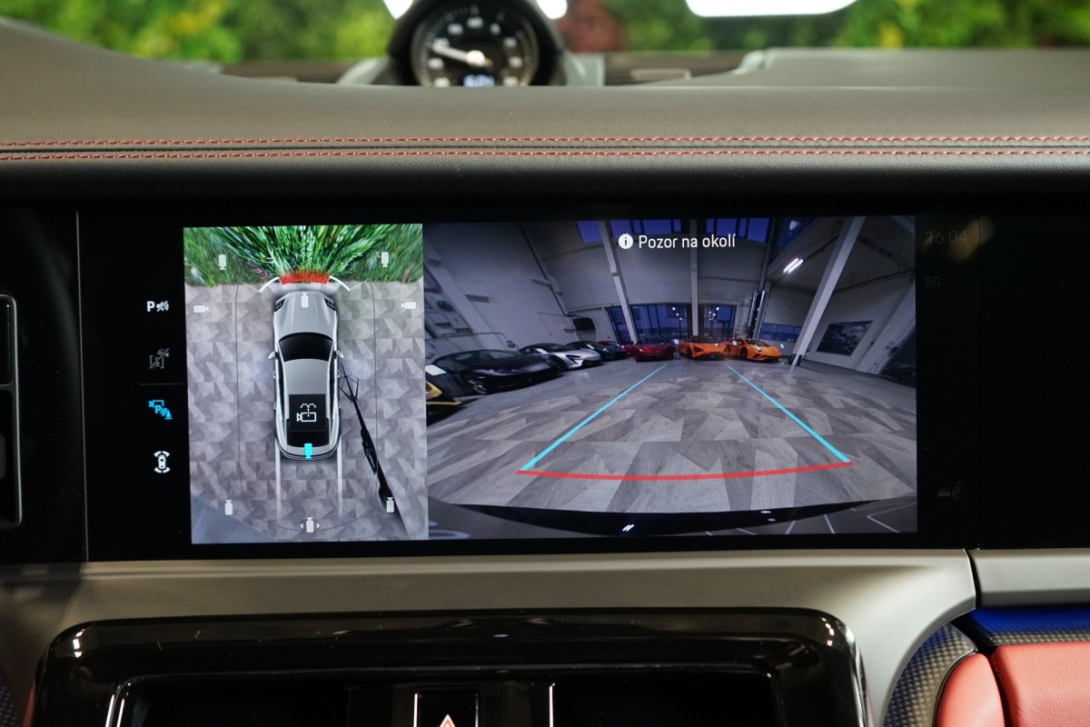 | Nadstandardní výbava: | 360° monitorovací systém (AVM), 8 rychlostních stupňů, adaptivní regulace podvozku, parkovací kamera, adaptivní tempomat, ABS, ambientní osvětlení interiéru, Android Auto, Apple CarPlay, asistent jízdy v jízdním pruhu, asistent jízdy v koloně, asistent rozjezdu do kopce (HSA), asistent změny jízdního pruhu, aut. aktivace výstražných světlometů, stabilizace podvozku (ESP), protiprokluzový systém kol (ASR), brzdový asistent, aut. zabrzdění v kopci, automatické parkování, parkovací senzory přední, parkovací senzory zadní, bezdrátová nabíječka mobilních telefonů, bezklíčové odemykání, senzor opotřebení brzdových destiček, senzor tlaku v pneumatikách, autorádio, bluetooth, USB, digitální příjem rádia (DAB), aut. klimatizace, dotykové ovládání palubního počítače, centrál dálkový, dělená zadní sedadla, el. dovírání dveří, el. nastavitelná zadní sedadla, el. okna, centrální zamykání, el. seřiditelná sedadla, alu kola, el. startér, el. víko zavazadlového prostoru, kožené čalounění, hands free, satelitní navigace, head-up display, hlasové ovládání palubního počítače, hlídání jízdního pruhu, hlídání mrtvého úhlu, hlídání provozu při couvání (RCTA), isofix, el. přední okna, senzor stěračů, LED adaptivní světlomety, LED denní svícení, LED matrixové světlomety, automatické přepínání dálkových světel, nastavitelný volant, natáčecí světlomety, natáčecí zadní kola, nezávislé topení, nouzové brzdění (PEBS), odvětrávaná sedadla, přední světla LED, paměť nastavení sedadla řidiče, panoramatická střecha, parkovací asistent, senzor světel, zadní světla LED, regulace tuhosti podvozku, regulace výšky podvozku, pohon 4x4, polohovací sedadla, aut. převodovka, pérování vzduch, digitální přístrojová deska, digitální přístrojový štít, roletky na zadních oknech, elektronická ruční brzda, palubní počítač, sedadla s funkcí masáže - přední, sedadla s funkcí masáže - zadní, venkovní teploměr, vnitřní teploměr, volba jízdního režimu, aut. stavitelný volant při nástupu, sledování únavy řidiče, multifunkční volant, posilovač řízení, řazení pádly pod volantem, start-stop systém, podélný posuv sedadel, střešní okno, střešní šíbr el., tónovaná skla, ukazatel rychlostního limitu (SLIF), potahy kůže, sportovní sedadla, ventilovaná zadní sedadla, bezklíčové startování, startování tlačítkem, vyhřívaná sedadla, vyhřívaná zadní sedadla, el. sklopná zrcátka, vyhřívaný volant, výškově nastavitelná sedadla, výškově nastavitelné sedadlo řidiče, zadní loketní opěrka, el. zrcátka, zatmavená zadní skla, záruka, čtyřzónová klimatizace, vyhřívaná zrcátka, | |