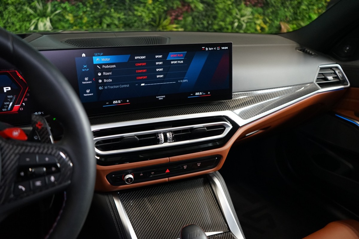 | Doplňující popis: | AS242063 Záruka a servisní balíčky: BMW Repair Inclusive na 5 let / 200 000 km, BMW Service Inclusive na 5 let / 100 000 km Fólie: Exteriér vozidla potažen ochrannou transparentní PPF fólií., Matná PPF fólie na displeji v interiéru. Výbava: Barva: BMW Individual metalický lak Dravit Grey, 19/20 M kovaná kola Double,spoke 826 M z M3 CS ve zlatém provedení, BMW Individual celokožené čalounění Merino, Prvky obložení interiéru Carbon Fibre, M karbon,keramické brzdy, Adaptivní M podvozek, M Drive Professional (M Laptimer / M trakční kontrola / M Drift Analyser), M karbonová střecha, M sportovní diferenciál, BMW Laserové světlomety, M Shadowline zatmavené světlomety, High,beam Assistant, asistent dálkových světel, Parkovací asistent Plus, 360° kamery, Přední a zadní parkovací senzory, Parkovací asistent, Asistent couvání, Komfortní přístupový systém, Automatické ovládání dveří zavazadlového prostoru, M sportovní sedadla, Nastavení sedadel, elektrické s pamětí pro sedadlo řidiče, Aktivní ventilace předních sedadel, Vyhřívání sedadel řidiče a spolujezdce, Vyhřívání volantu, 3zónová automatická klimatizace, BMW Individual čalounění stropu v barvě antracitu, Driving Assistant, Tempomat, Varování před čelní kolizí, Varování při opuštění pruhu, Varování při změně pruhu, Varování při omezení rychlosti, Harman Kardon Surround Sound System, BMW Live Cockpit Professional, DAB,Tuner, Přihrádka pro bezdrátové nabíjení, Apple CarPlay, Android Auto, Satelitní navigace, Galvanická povrchová úprava pro ovládací prvky, Eibach snížené přední pružiny, CSL style přední maska a boční air vents, CSL style přední splitter, Výfuková soustava Miltek 4 Single Midpipe, Žluté denní svícení (Yellow DLRs), Podložky pod kola 12mm vpředu a 15mm vzadu, Agresivnější nastavení geometrie pro lepší přesnost a stabilitu v zatáčkách, Možnost přiložení všech originálních dílů k vozu | |