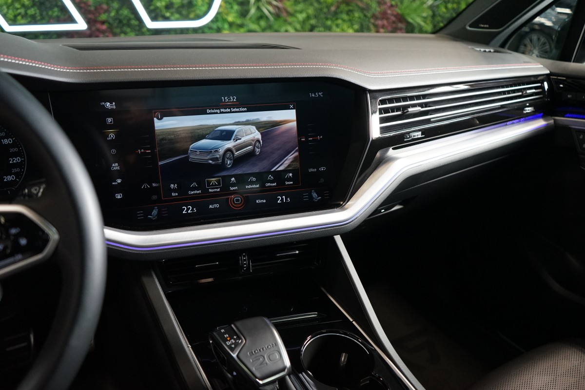 | Doplňující popis: | AS250335 Výbava: Edice 20 let výroby VW Touareg, Barva: Meloe modrá, metalický lak, 22 kola z lehké slitiny, Čalounění: Kůže černá / červené a bílé prošití, Elektricky ovládaná přední sedadla s masážní funkcí, Sedadlo řidiče a paměťovou funkcí, Přední sedadla s ventilací, Vyhřívaná zadní sedadla, 4 zónová automatická klimatizace, Sportovní vyhřívaný multifunkční volant, Elektricky ovládané víko kufru, LED světlomety, App,Connect (Apple CarPlay, Android Auto, MirrorLink), Přední a zadní parkovací senzory, 360 parkovací kamera, Adaptivní tempomat ACC, Lane Assist (Asistent držení pruhu), Side Assist (Hlidání mrtvého úhlu), Front Assist, Asistent vyparkování, Rozpoznávání dopravních značek, Ropoznání přívěsu, Rozpoznávání únavy, Palubní počítač, Bluetooth, Zatmavená skla, Ambientní a konturní osvětlení interiéru, Dynaudio sound system, Elektricky ovládané tažné zařízení, Adaptivní vzduchový podvozek, Satelitní navigace, Head,up displej, Nezávislé topení | |