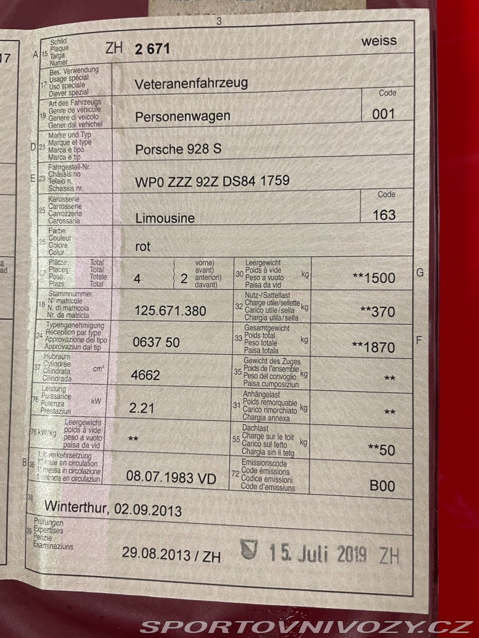 | Doplňující popis: | PORSCHE 928 S r.v 10/1983, stav 129´000km, obsah 4'664 cm³, výkon 310PS (228kW), manuální převodovka, velmi dobře udržovaný, pouze letní provoz, garance počtu km, první majitel, momentálně není potřeba žádný servis, vše doloženo účty celkově za 500tis Kč za celou historii.Velmi zajímavá a vyjímečná technika V8. Dovezeme ze Švýcarska a cena je včetně DPH, cla, podrobné prohlídky, vyřízení celního řízení a dovozu. Podle prvotní informace je auto v TOP stavu ale ještě jsme ho neviděli nemůžeme potvrdit takže to berte s rezervou. Díky malé rozloze a rozmanitosti terénu a kvalitních silnic a servisu bývají vozy ve velmi dobrém stavu. Využijte poměrně příznivého kurzu CHF/CZK. V případě dotazů volejte nebo pište. Díky. | |