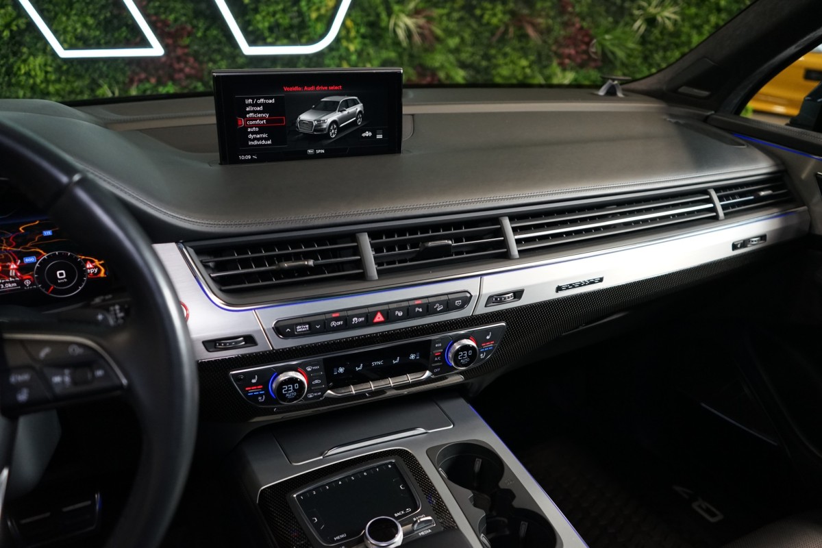 | Doplňující popis: | AS251390 Výbava: Barva: Orca černá, metalický lak, 22 Kola Quattro z lehké slitiny, Čalounění: Černá kůže, perforovaná, Paket černé optiky, LED denní svícení, Brzdová soustava Audi Ceramic s třmeny v šedé barvě, Výplně dveří mikrovlákno Dinamica Frequenz, Elektricky ovládaná vnější zpětná zrcátka, Elektricky nastavitelná přední sedadla s paměťovou funkcí, Vyhřívaný multifunkční volant, kůže, Dekorace z karbonu Vector, Ambientní osvětlení, Elektricky nastavitelná bederní opěrka předních sedadel, ISOFIX, 3místné provedení zadních sedadel plus, 4zónová automatická klimatizace, Třetí řada sedadel, Elektricky ovládané víko kufru, Střešní ližiny v černé barvě, Elektricky ovládané tažné zařízení, Adaptivní pneumatický podvozek, Protisluneční clony zadních oken, Přední sedadla s masážní funkcí, Vyhřívaná přední a zadní sedadla, Audi Virtual Cockpit, Head,Up displej, Audi phone box, bezdrátové nabíjení telefonu s anténou, Touchpad, Přední sedadla s odvětrávací funkcí, Regulace rychlosti při jízdě ze svahu, Volič jízdních režimů, Audi Drive Select, Adaptivní tempomat, Asistent nočního vidění, Audi Side Assist, Audi Active Lane Assist, Detekce dopravních značek, Audi Pre Sense, Doporučená přestávka, USB, Bluetooth, Dešťový senzor, Přídavné topení, Nezávislé topení, DVD přehrávač, SD Card, CD přehrávač, AUX, TV,Tuner, Satelitní navigace, 2x zásuvka 12 V v zadní části vozu, Přední a zadní parkovací senzory, Zadní parkovací kamera, Quattro (se samosvorným mezinápravovým diferenciálem), Bang & Olufsen 3D premium audio system, Servozavírání dveří Soft,Close, Bezklíčový přístup, Natáčecí zadní náprava, Elektricky ovládané skleněné panoramatické okno | |