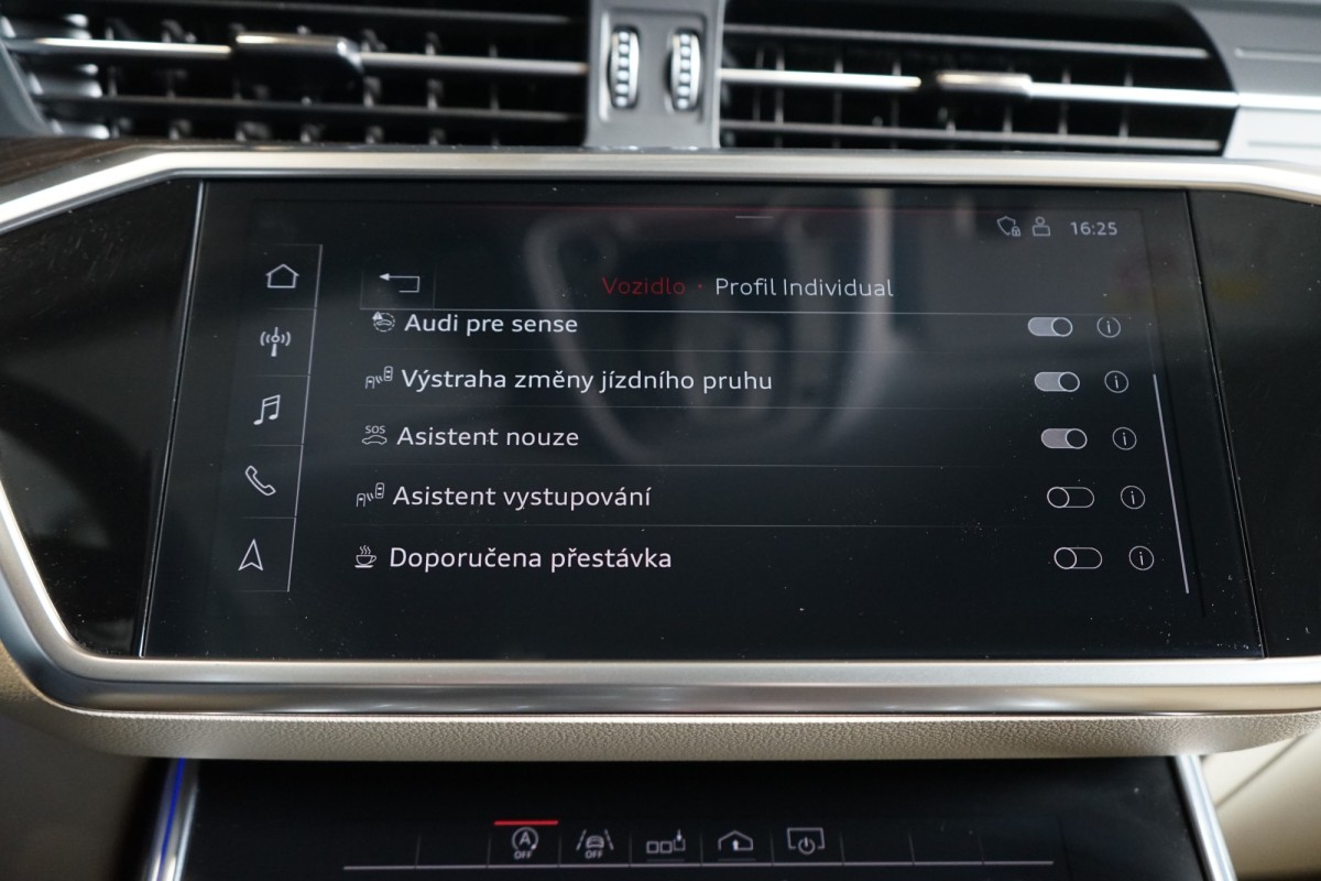 | Doplňující popis: | AS261608 Výbava: Barva: Brilliant černá Čalounění: Béžová kůže Valcona 20 disky kol z lehkých slitin S line LED Matrix světlomety Automatické přepínání dálkových světel Quattro Adaptivní tempomat s regulací odstupu Elektricky nastavitelná přední sedadla s pamětí Nastavení bederní opěrky Vyhřívaná sedadla vpředu a vzadu Ventilace předních sedadel Masážní funkce pro přední sedadla Kožený multifunkční volant Elektricky stavitelný volant Vyhřívaný volant DAB, Tuner Satelitní navigace 4zónová automatická klimatizace Elektricky ovládané víko zavazadlového prostoru USB Čtečka SD karet Home Link, otevírání garážových vrat Adaptivní vzduchové odpružení s nastavitelnou výškou a tuhostí Bluetooth 360° kamery Přední a zadní parkovací senzory Audi Smartphone Interface Apple CarPlay, Android Auto Asistent efektivity Ambientní osvětlení Výstraha vzdálenosti Audi pre sense Výstraha změny jízdního pruhu Asistent nouze Asistent vystupování Doporučená přestávka Asistent hlídání mrtvého úhlu Oboustranně stmívatelná zpětná zrcátka Vnější zpětná zrcátka elektricky nastavitelná, vyhřívaná a sklopná Bang & Olufsen Premium Sound System Středová loketní opěrka vpředu komfortní Zadní loketní opěrka Servozavírání dveří Soft,Close Volič jízdních režimů, Audi Drive Select Dešťový senzor Bezklíčové odemykání a starování ISOFIX | |