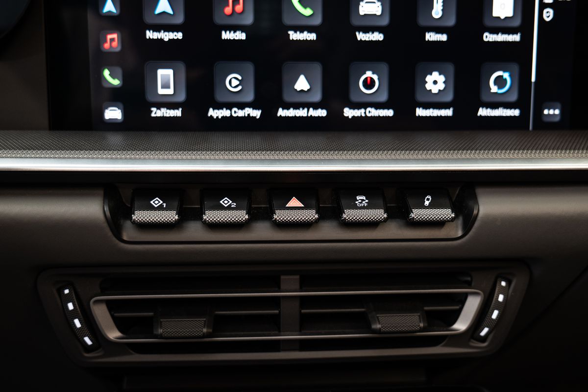 | Nadstandardní výbava: | bluetooth, senzor tlaku v pneumatikách, hlídání mrtvého úhlu, aut. aktivace výstražných světlometů, elektronická ruční brzda, alarm, bezklíčové odemykání, start-stop systém, palubní počítač, digitální příjem rádia (DAB), USB, satelitní navigace, dotykové ovládání palubního počítače, autorádio, Apple CarPlay, multifunkční volant, nastavitelný volant, paměť nastavení sedadla řidiče, vyhřívaná sedadla, sportovní sedadla, isofix, el. seřiditelná sedadla, denní svícení, zadní světla LED, automatické přepínání dálkových světel, alu kola, el. zrcátka, vyhřívaná zrcátka, senzor stěračů, senzor světel, el. přední okna, el. okna, centrální zamykání, řazení pádly pod volantem, regulace tuhosti podvozku, dvouzónová klimatizace, přední světla LED, LED adaptivní světlomety, deaktivace airbagu spolujezdce, centrál dálkový, dělená zadní sedadla, hlasové ovládání palubního počítače, 360° monitorovací systém (AVM), parkovací senzory přední, venkovní teploměr, posilovač řízení, stabilizace podvozku (ESP), protiprokluzový systém kol (ASR), EDS, nouzové brzdění (PEBS), aut. zabrzdění v kopci, 6x airbag, shrnovací střecha, pohon 4x4, aut. převodovka, kožené čalounění, ABS, | |