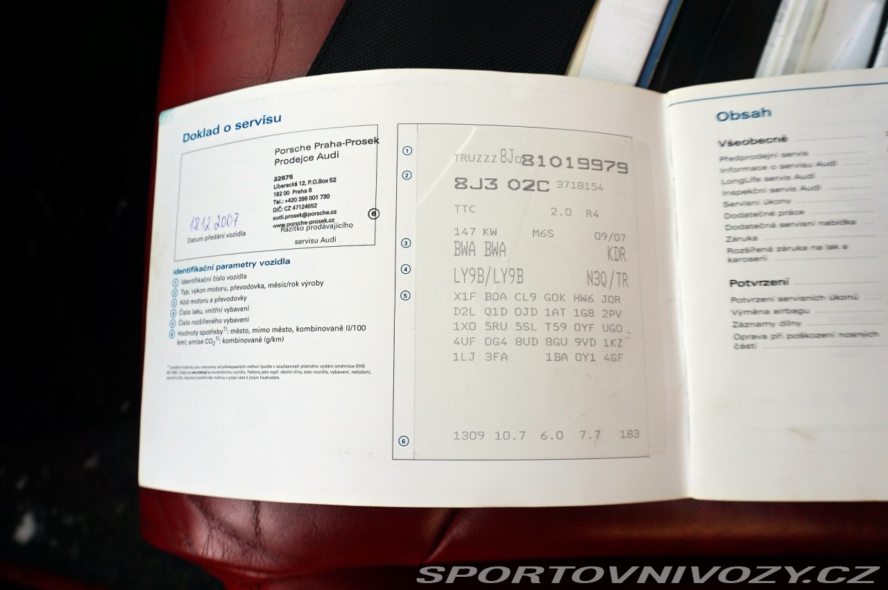| Nadstandardní výbava: | VIN: TRUZZZ8J081019979 VYROBENO : 2007/12 MOTORIZACE : 2,0 TFSI 147KW (BWA ) STK : 11/2027 NAJETO : 187 000 KM KOUPENO NOVÉ V CZ , 2X KLÍČ , ROZVODY 2024 PŘI 175 000 KM , 2021 VE 156000 DEKARBONIZACE MOTORU ... SERVISNÍ KNIHA .. OLEJ 5W30LL MĚNĚN VE 180 000 KM ..VOZIDLO V PPF PRUHLEDNÉ FOLII . DRUHÁ SADA KOL ... Kód motoru BWA | |
