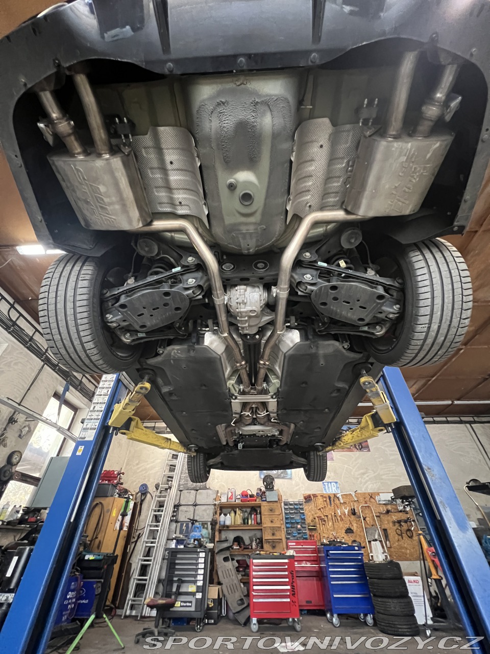 | Nadstandardní výbava: | Na voze laděný výfuk Borla S-Type 80 000,- (originál k vozu), nové účinnější drážkované brzdy DBA Xtreme 40 000,-, nové letní komplety Yakuza Japan Takeshi alu kola s novými pneu Michelin Pilot sport 5 za 50 000,- a aktuálně na nových zimních pneu Goodyear ultragrip performance+ za 25 000,- na originálních alu. Zadní spoiler na kufru 4 000,-. Leštění s voskem za 5 000,-. | |