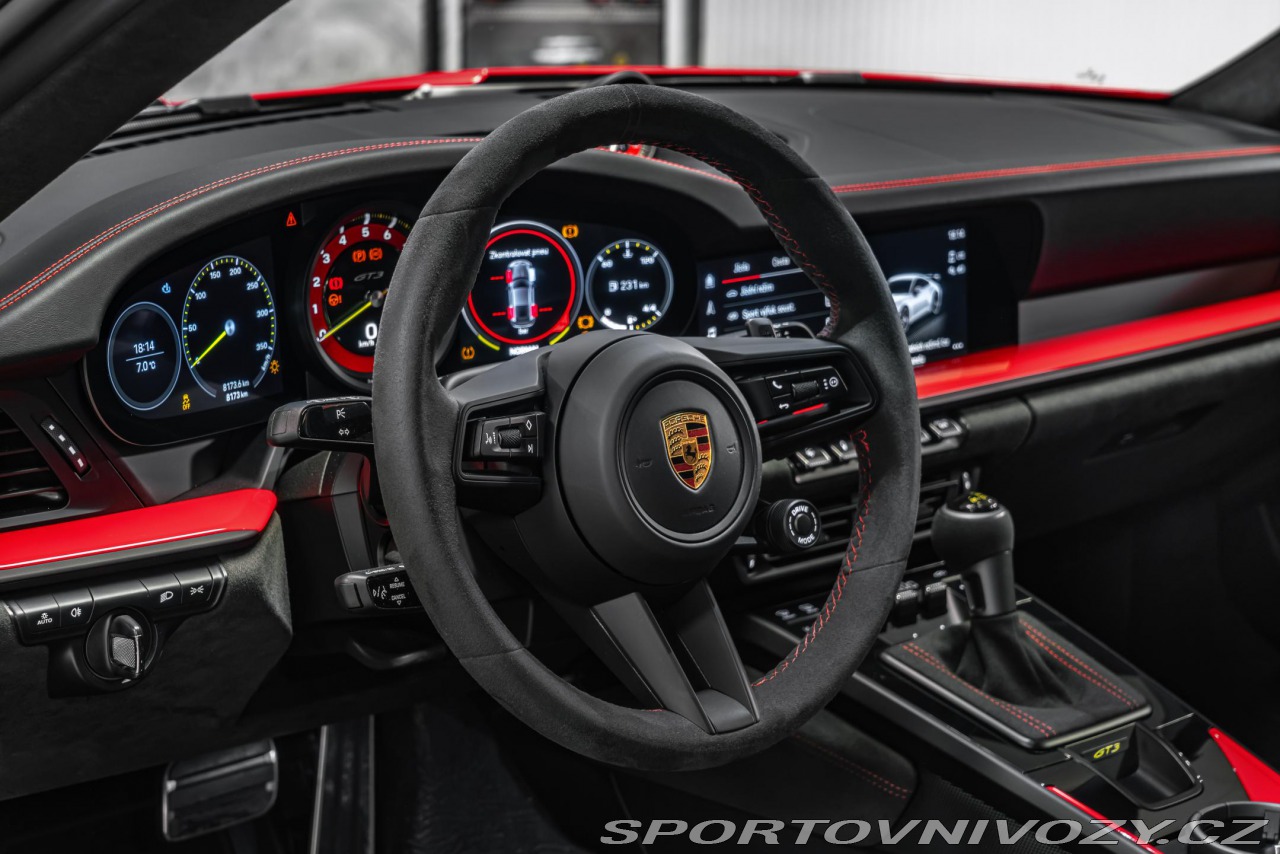 | Doplňující popis: | Vozidlo k vidění na showroomu v OLOMOUCI na adrese: Na Vlčinci 16/3, Olomouc, 77900, CZ Porsche 911 GT3 Výbava: G1 – Guards červená (exteriér) 74 – Kožený interiér / Race-Tex prvky v černé barvě, kontrastní prošívání Guards červená 6A8 – Club Sport paket včetně hasicího přístroje UD1 – LED osvětlení dveří s logem Porsche (Porsche Exclusive Manufaktur) AMA – Dekorativní nálepka Motorsport v černé barvě (Porsche Exclusive Manufaktur) AMN – Logo modelu na bocích v černé barvě (Porsche Exclusive Manufaktur) G1C – 7stupňová převodovka Porsche Doppelkupplung (PDK) 8LH – Paket Sport Chrono včetně tlačítka módů 0I2 – Palivová nádrž o objemu 90 litrů 2UH – Systém zvedání přední nápravy C2Q – 20"/21" kola 911 GT3 1NX – Kola lakovaná v saténové černé (Porsche Exclusive Manufaktur) 8JU – Tónované LED Matrix světlomety Matrix Beam včetně PDLS Plus P14 – Automaticky tónovaná vnitřní a vnější zrcátka s integrovaným dešťovým senzorem KA2 – ParkAssist (vpředu a vzadu) včetně couvací kamery QR9 – Rozpoznávání dopravních značek QQ2 – Paket designového osvětlení Q1K – Plně skořepinová sedadla FZ1 – Bezpečnostní pásy v barvě Guards červená (Porsche Exclusive Manufaktur) VN0 – Stopky Sport Chrono v barvě Guards červená (Porsche Exclusive Manufaktur) 8PA – Barevný otáčkoměr – Guards červená (Porsche Exclusive Manufaktur) 1MI – Věnec volantu a volič převodovky z hladké kůže v černé barvě 4QX – Šestibodový závodní bezpečnostní pás pro sedadlo spolujezdce 7TH – Interiérový paket lakovaný v barvě karoserie (Porsche Exclusive Manufaktur) 9VL – BOSE® Surround Sound System Zřeknutí se odpovědnosti: Ceny a dostupnost se mohou změnit bez předchozího upozornění, výše uvedené informace mohou být nesprávné. V případě zájmu o prohlídku vozu doporučujeme si domluvit osobní schůzku. | |