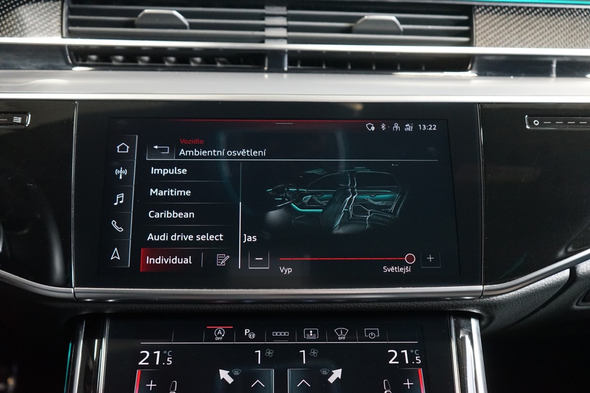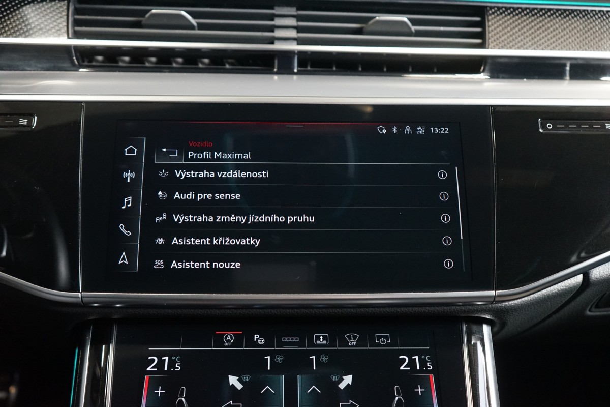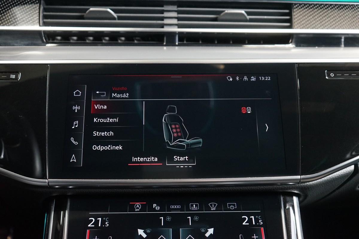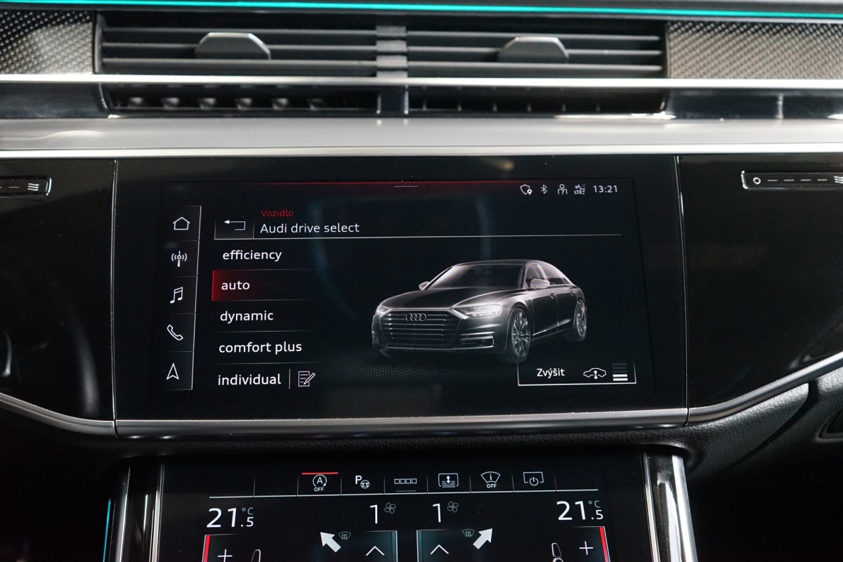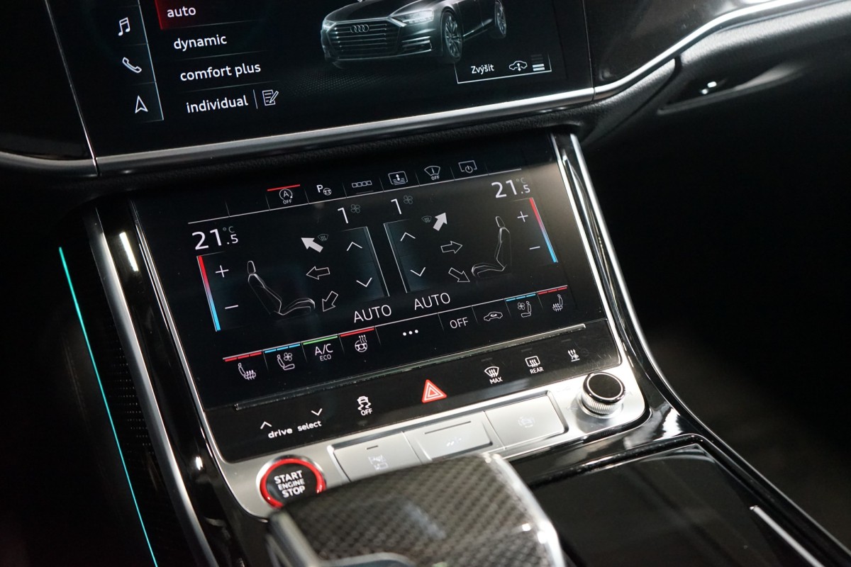 | Doplňující popis: | VŮZ SE NENACHÁZÍ NA PROVOZOVNĚ, V PŘÍPADĚ ZÁJMU NUTNO VOLAT PŘEDEM! AS261671 Výbava: Barva: Mythos černá, metalický lak Čalounění: Kůže Valcona černá s diamantovým prošitím v barvě Pastel stříbrná 20 Audi Sport disky kol Černě lakované brzdové třmeny S LED Matrix světlomety včetně Laserové technologie Asistent dálkových světel Automatické udržování vzdálenosti s funkcí follow to stop Nezávislé topení Lišty stěračů s integrovanými tryskami Elektricky nastavitelná přední sedadla s pamětí Vyhřívaná a ventilovaná přední sedadla Masážní funkce pro přední a zadní sedadla Vyhřívaná a ventilovaná zadní sedadla Kožený multifunkční volant Komfortní vyhřívání vpředu Chlazená přihrádka před spolujezdcem ISOFIX Elektrické víko zavazadlového prostoru Keyless Tepelně izolační zasklení Dekor Carbon Vector Přehrávač DVD Kontrola tlaku v pneumatikách Ostřikovače světlometů Audi phone box Quattro Inteligentní parkovací asistent 8stupňová automatická převodovka pro pohon všech kol Torque Vectoring Head,Up displej Sportovní sedadla vpředu Rozpoznání dopravních značek DAB tuner Sklo s tmavým tónováním Elektricky nastavitelná sedadla vzadu Elektricky výklopné tažné zařízení Roletky v zadních dveřích Panoramatické elektricky posuvné střešní okno Automatická klimatizace s 4zónovou regulací Vyhřívaný volant Adaptivní vzduchové odpružení s nastavitelnou výškou a tuhostí Aktivní podvozek Ambientní osvětlení USB Bluetooth Výstraha vzdálenosti Audi pre sense Výstraha změny jízdního pruhu Asistent křižovatky Asistent nouze Asistent vystupování Doporučená přestávka Satelitní navigace 360° kamery Přední a zadní parkovací senzory Asistent hlídání mrtvého úhlu Bang & Olufsen Premium Sound System Centrální displej v zadní loketní opěrce Servomechanické dovírání dveří | |