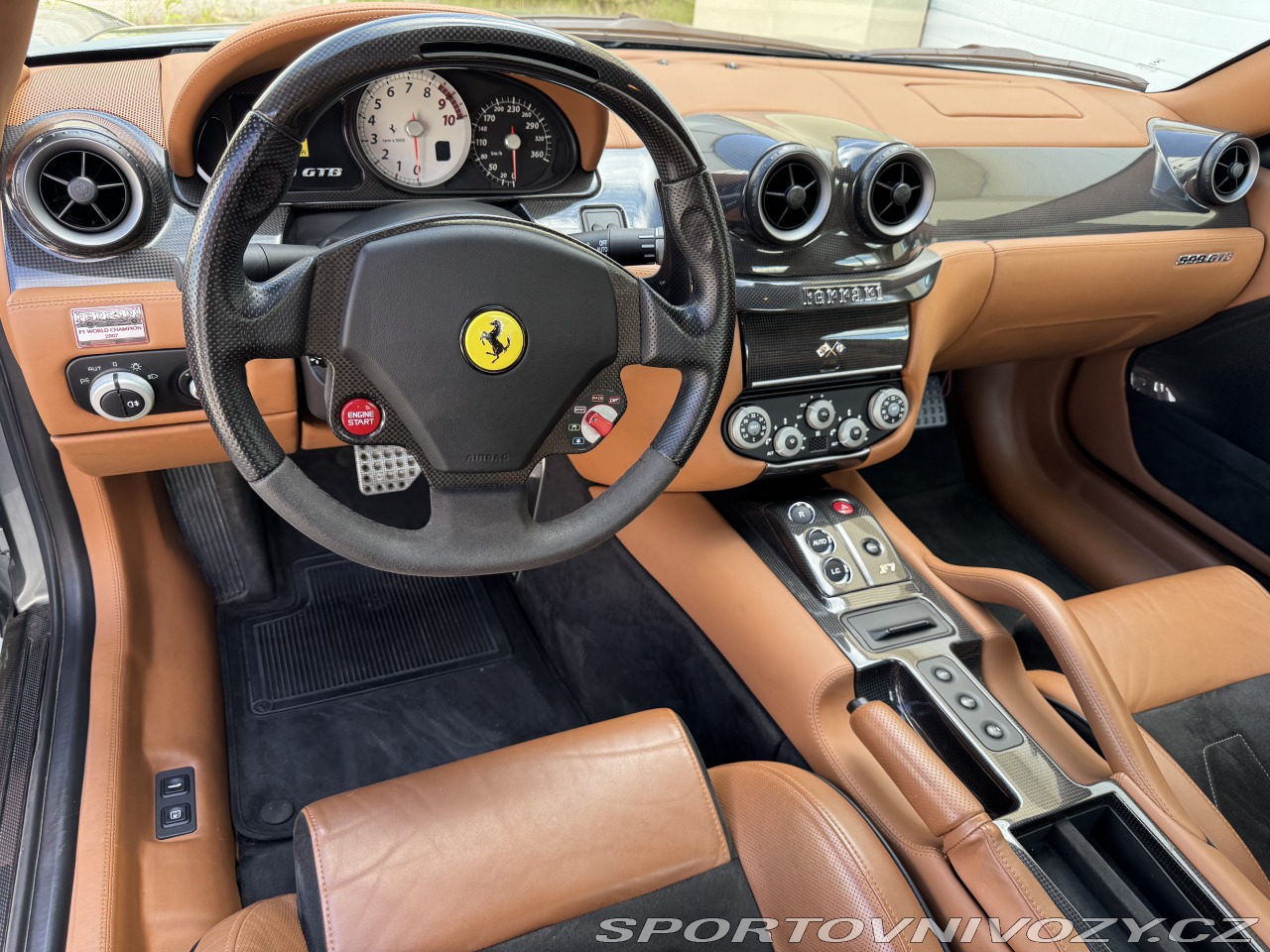 | Nadstandardní výbava: | 6.0 V12 456 kW F1 Superfast První registrace: 16. 5. 2008 Najeto: 44 000 km Barva: Grigio Titanio Specifikace: HGTE Handling Pack Stav vozu Ferrari 599 GTB Fiorano s výbavou HGTE – Handling Gran Turismo Evoluzione ve výjimečné specifikaci. Jedná se o velmi zachovalý a čerstvě servisovaný exemplář, který splňuje všechny předpoklady pro sběratelské i řidičské Ferrari. Kompletní servis Vůz právě prošel rozsáhlým odborným servisem, při kterém bylo provedeno: výměna všech kapalin (olej, brzdová, chladicí) výměna všech filtrů nové svíčky doplňení a kontrola klimatizace přetěsnění horní části motoru nové uložení motoru kompletní nové keramické brzdy CCM nové pneumatiky Michelin geometrie a kontrola podvozku Dále byly v minulosti pravidelně prováděny další údržby a výměny – vše je doloženo v dokumentaci k vozu. | |