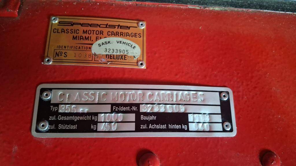| Doplňující popis: | Velmi pěkný CMC Speedster 356 z roku 1983 s benzínovým motorem o objemu cca 2,2 l a manuální převodovkou. Vůz je ve velmi zachovalém stavu, má hezký lak a interiér v dobré kondici s béžovým koženým čalouněním. Karoserie od CMC Classic Motor Carriages je pevná a kvalitně zpracovaná. Auto je plně funkční – bez problémů startuje, dobře jede i brzdí. Osazeno svižným motorem s 4stupňovou převodovkou. Nově je namontovaná střecha, která dobře sedí, včetně závodního tonneau krytu. Vůz má také nové poklice kol a pneumatiky. Vůz je inzerován formou zakázkového dovozu ze zahraničí. Cena zahrnuje prověření a prohlídku vozu i jeho dopravu do ČR. Veteráni na Truc: parta normálních lidí, kteří milují auta. Desítky aut máme skladem v naší péči a další připravené k dovozu. Rozumíme vašim potřebám, jsme k dispozici pro vaší plnou spokojenost, protože ta je naším cílem. Umíme toho víc – například veškeré dokumenty nutné pro přihlášení vyřídíme rychle a efektivně. Více informací ochotně poskytneme na telefonním čísle +420723510286 (i Whatsapp). Umíme vyřešit dovoz vašeho vysněného auta odkudkoliv (ať už klasického nebo nového) včetně registrace, pojištění a dalších souvisejících služeb. | |