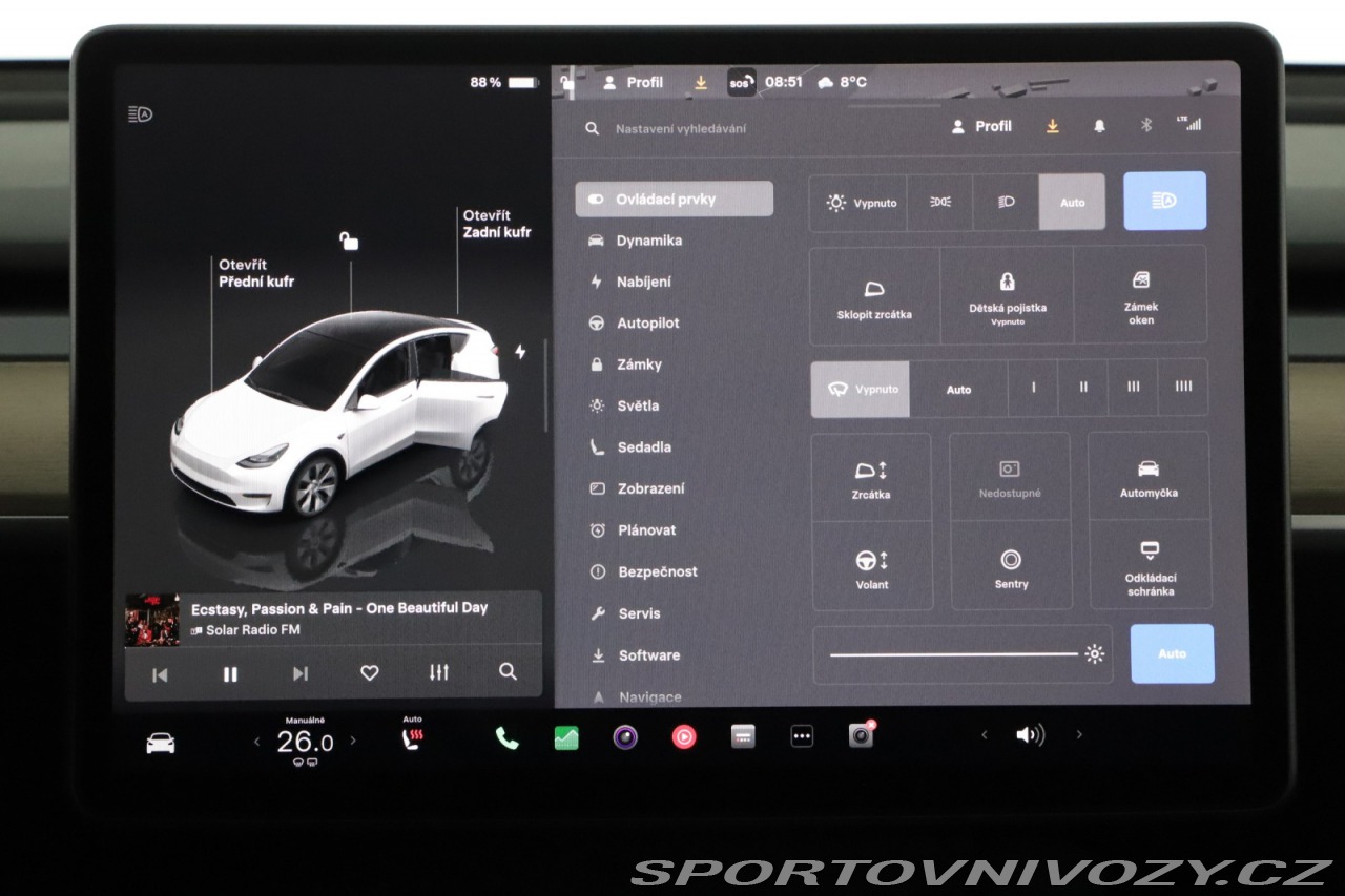 | Nadstandardní výbava: | zadní světla LED, Wireless Phone Charging, dvojitá skla, adaptivní světlomety, elektricky ovládaná sedadla, USB připojení (audio), LED světla pro denní svícení, vyhřívané čelní sklo, elektr.sklop.zrcátka, elektricky ovládaná zrcátka, stereo, dešťový senzor, paměť nastavení sedadel, centrál, bezklíčkové startování, asistent rozjezdu do kopce, isofix, vyhřívaný volant, Automatické nastavování volantu, Automatická dálková světla, tažné zařízení, Automatické zastavení před překážkou, hlasové ovládání palubního systému, al kola orig., USB-C zásuvka, prémiový audiosystém, kontrola tlaku v pneumatikách, mlhovky, automatická klimatizace, elektrická parkovací brzda, Rozpoznávání dopravních značek, adaptivní tempomat, airbag, systém pro hlídání vybočení z jízdního pruhu, Autopilot, panoramatická střecha, multifunkční volant, bezklíčkové odemykání, elektrické stahování oken, systém pro hlídání mrtvého úhlu, Přední zavazadlový prostor, Kabel pro veřejné nabíjení, Přední a zadní parkovací senzory, ASR, Infotainment, posilovač řízení, kožené sedačky, vyhřívaná sedadla, Kožený volant, bluetooth připojení, počítač, Parkovací kamera, auto. denní svícení, ESP, elektrické víko kufru, E-Pedal, Tepelné čerpadlo, navigace, LED hlavní světlomety, vyhřívaná zadní sedadla, ABS, tónovaná skla, Loketní opěrka, a mnoho další výbavy, | |