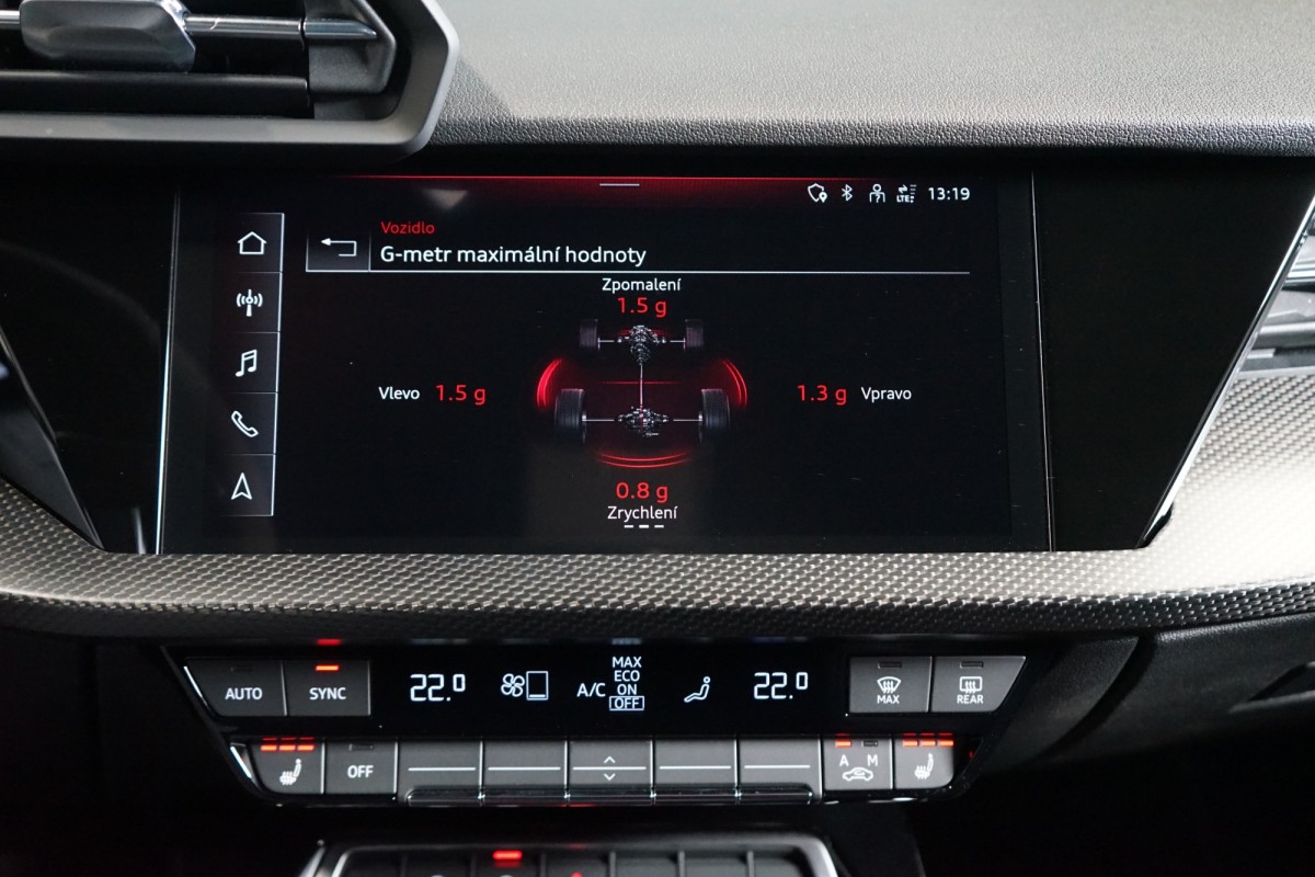 | Doplňující popis: | AS261713 Záruka: Prodloužená záruka na 4 roky / 120 000 km Výbava: Barva: Zelená Kyalami Čalounění: Čalounění sedadel v kombinaci umělá kůže a mikrovlákno Dinamica s kosočtvercovým vzorem a s vyraženými RS logy v sedadlech 19 litá kola, 5paprskový Y,design Červeně lakované brzdové třmeny RS Asistent nouzového brzdění Asistent rozjezdu do kopce Keyless Asistent hlídání mrtvého úhlu Bluetooth Centrální zamykání Dešťový senzor Digitální kokpit Rozpoznání únavy Dynamická regulace dálkových světel Elektricky ovládaná okna Head,Up displej Automatická 2zónová klimatizace Kontrola tlaku v pneumatikách Lane Assist LED světla pro denní svícení LED Matrix světlomety Multifunkční volant, mikrovlákno Dynamica Nastavitelný sloupek řízení Parkovací asistent Adaptivní tempomat s regulací odstupu Pádla řazení pod volantem Soundsystém Bang & Olufsen Střední loketní opěrka vpředu Zadní loketní opěrka Senzor světel Systém tísňového volání eCall Tónovaná skla ISOFIX USB Vnější zpětná zrcátka elektricky nastavitelná Vnitřní zpětné zrcátko automaticky zaclonitelné Vyhřívaná sedadla vpředu Zadní parkovací kamera Přední a zadní parkovací senzory Elektrické víko zavazadlového prostoru Elektricky nastavitelná bederní opěrka vpředu Elektricky nastavitelné sedadlo řidiče Vyhřívaná sedadla vpředu Volič jízdních režimů Audi Drive Select Ambientní osvětlení Výstraha rychlosti Výstraha vzdálenosti Výstraha opuštění jízdního pruhu Audi pre sense Výstraha změny jízdního pruhu Doporučená přestávka | |
