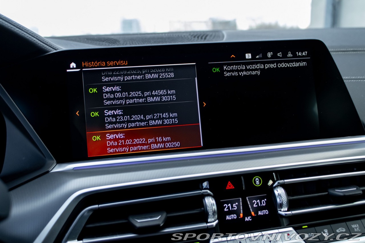 | Nadstandardní výbava: | S337 M športový balík, S710 M kožený volant, S715 M aerodynamický balík, S7M9 M rozšírený Shadow Line (čierne vysokolesklé lišty), S7R7 balík Innovation, S413 sieť v batožinovom priestore, S420 stmavené sklá vzadu (Sun Protection), S423 velúrové koberčeky, S428 výstražný trojuholník a lekárnička, S4AW prístrojová doska v prevedení Sensatec, S4HA vyhrievanie predných a zadných sedadiel, S4KM interiérové lišty Aluminium Mesh Effect Dark, S4MA M multifunkčné sedadlá, S4NB automatická 4-zónová klimatizácia, S4T8 balík rozšírených vonkajších spätných zrkadiel, S4UR ambientné osvetlenie interiéru, S610 Head-Up displej, S654 DAB tuner, S676 HiFi systém reproduktorov, S6AE Teleservices, S6AF zákonné núdzové volanie, S6AK Connected Drive Services, S6C4 Connected Package Professional, S6P1 dočasné odstránenie BMW Remote Software Upgrade, S6U3 BMW Live Cockpit Professional, S6U8 BMW ovládanie gestami, S6WD WLAN Hotspot, S548 tachometer s kilometrovou stupnicou, S5AC asistent diaľkových svetiel, S5AQ Active Guard Plus, S5AS Driving Assistant, S5AZ BMW laserové svetlomety, S5DN Parkovací asistent Plus, S230 špecifický rozsah pre EÚ, S2NH M športové brzdy, S2PA poistné skrutky kolies, S2TB športová automatická prevodovka, S2VB zobrazenie tlaku v pneumatikách, S2VF adaptívny M podvozok, S302 alarm, S320 bez označenia modelu, S322 komfortný prístupový systém, S3MC M strešné nosiče Shadow Line, S3MF M svetlomety Shadow Line, S801 nemecká verzia, S851 jazyková verzia nemčina, S879 nemecká palubná literatúra, S8TF aktívna ochrana chodcov, S760 Shadow Line s vysokým leskom, S775 čalúnenie stropu vo farbe antracit, S1CB CO2 rozsah, S1CE rekuperačný systém, S1MA M športový výfukový systém, S1PQ 22" BMW disky Double Spoke 742M, S925 Dummy-SALAPA, S9QY príprava pre asistenčné systémy vodiča II, SA090 90 Ah AGM batéria, SC27 farba Arktis-Grau Brillanteffekt (sivá metalíza), SDEB PPCU48GEN1 RSU, SMAH9 koža Vernasca Black s hnedým prešívaním. ---------- - Krajina pôvodu: Nemecko - Po 1. majiteľovy na Slovensku - Úplná servisná história Výbava: ABS, Adaptívny tempomat, Airbagy, Alarm, Centrálne zamykanie, DSC, Isofix, Systém kontroly tlaku v pneumatikách (TPMS), Systém tiesňového volania (e-Call), Bezkľúčové štartovanie, Elektrické okná, Kožený interiér, LED svietenie, Multifunkčný volant, Welcome light, Ambientné osvetlenie, Dažďový senzor | |