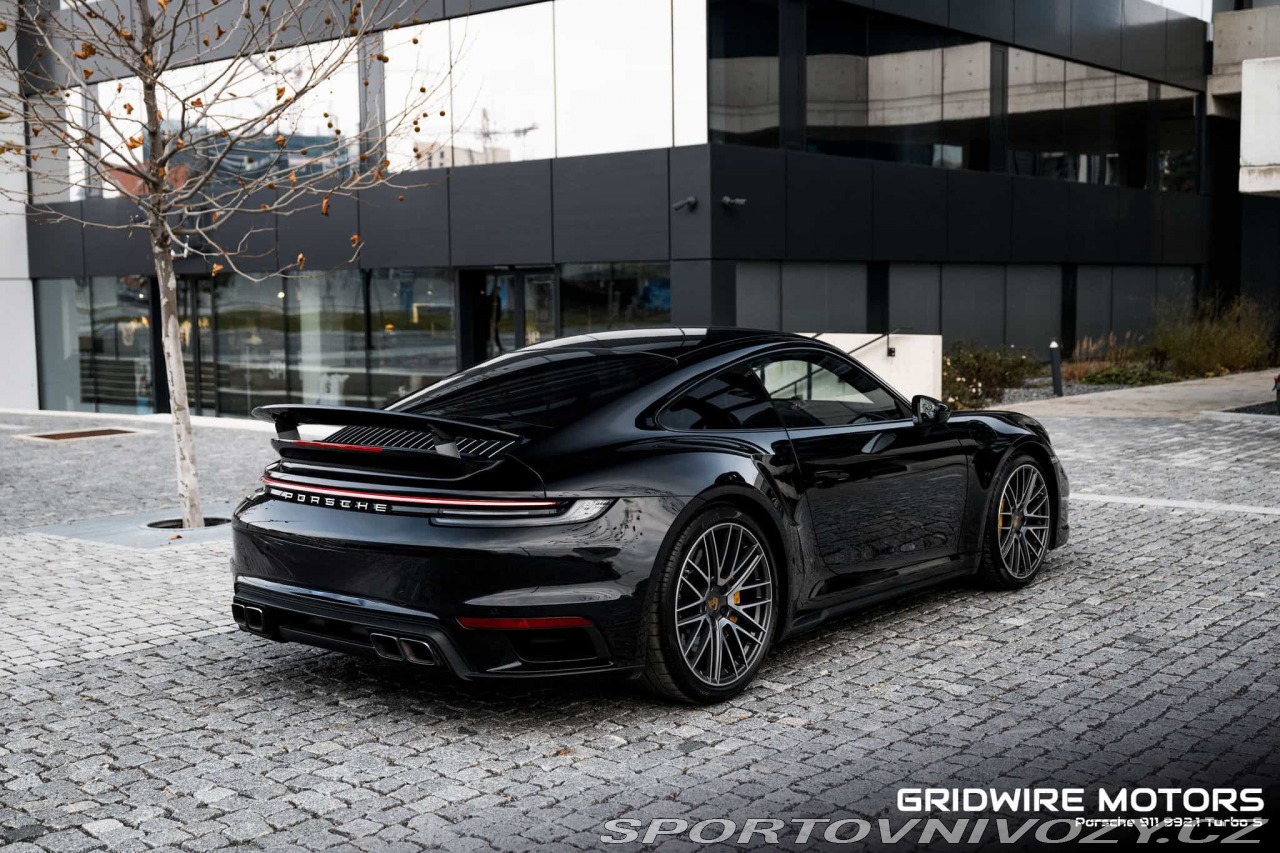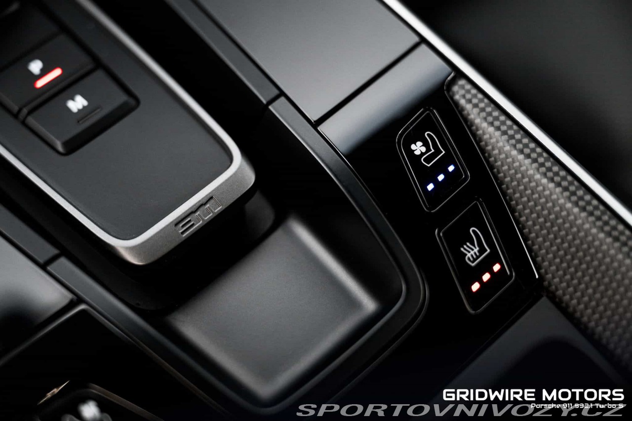 | Nadstandardní výbava: | Porsche 911 Turbo S (992) MY21. Vůz ve specifikaci: Jet Black Metallic, černý kožený interiér (Full Leather) a 8st. PDK, motor 3.8 biturbo 478 kW. Bohatá výbava zahrnuje mimo jiné PCCB keramické brzdy, PASM, PDCC Sport, PTV Plus, řízení zadní nápravy a zvedání přední nápravy (Front Axle Lift). Komfort a technologie: Matrix LED světlomety s PDLS Plus (v černém provedení), ParkAssist se Surround View, BOSE Surround Sound, Apple CarPlay, Sport Chrono (vč. Track Precision App) a adaptivní sportovní sedadla Plus 18-way s pamětí, vyhříváním i ventilací. Dále např. HomeLink, ionizér a lehká/akustická skla s privacy. Historie v Porsche systému: evidované servisní záznamy a svolávací kontroly včetně stavů km u záznamů. Vše vyřešeno a záznamy jsou dostupné k náhledu. Možno zakoupit 3-letou záruku Porsche Approved. Vozidlo splňuje všechny nutné podmínky pro prodloužení záruky. K vozidlu navíc sada identických zimních kol za příplatek. | |