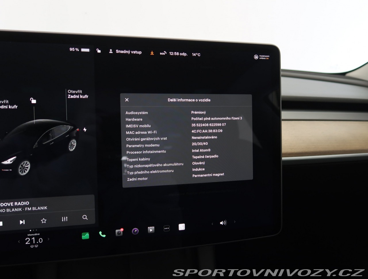 | Nadstandardní výbava: | Wireless Phone Charging, multifunkční volant, mlhovky, E-Pedal, ASR, panoramatická střecha, isofix, litá kola, adaptivní tempomat, kožené sedačky, bluetooth připojení, paměť nastavení sedadel, Kabel pro veřejné nabíjení, bezklíčkové startování, LED hlavní světlomety, adaptivní světlomety, asistent rozjezdu do kopce, dvojitá skla, ESP, posilovač řízení, Rozpoznávání dopravních značek, elektrické stahování oken, dešťový senzor, USB-C zásuvka, tempomat, al kola orig., ABS, Přední a zadní parkovací senzory, Infotainment, systém pro hlídání vybočení z jízdního pruhu, automatická klimatizace, vyhřívaný volant, bezklíčkové odemykání, Automatické zastavení před překážkou, počítač, Automatické nastavování volantu, Tepelné čerpadlo, systém pro hlídání mrtvého úhlu, centrál, elektrické víko kufru, navigace, Kožený volant, auto. denní svícení, Autopilot, Loketní opěrka, vyhřívaná sedadla, zadní světla LED, elektrická parkovací brzda, stereo, Volba jízdního režimu, airbag, Parkovací kamera, Domácí kabel (230 V), elektr.sklop.zrcátka, tónovaná skla, elektricky ovládaná zrcátka, kontrola tlaku v pneumatikách, Přední zavazadlový prostor, vyhřívaná zadní sedadla, a mnoho další výbavy, | |
