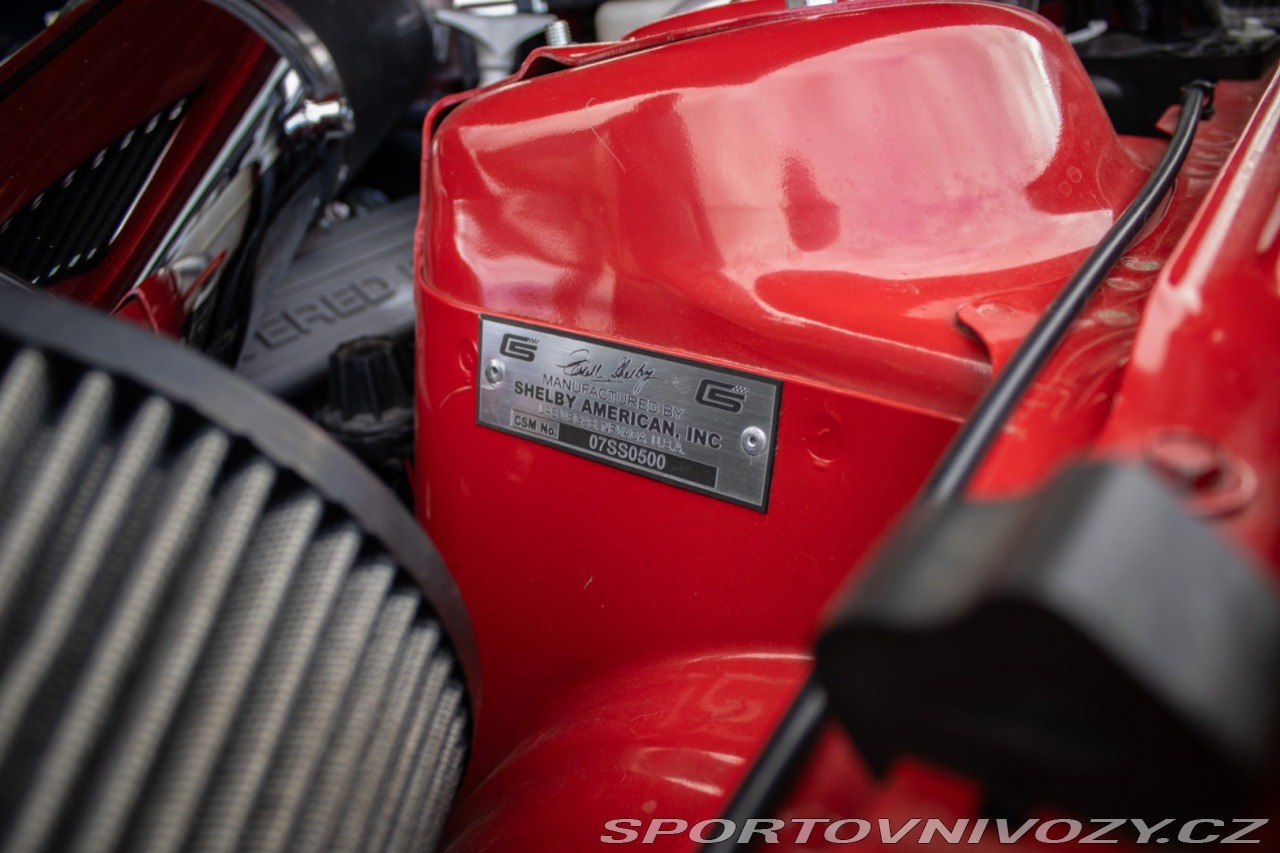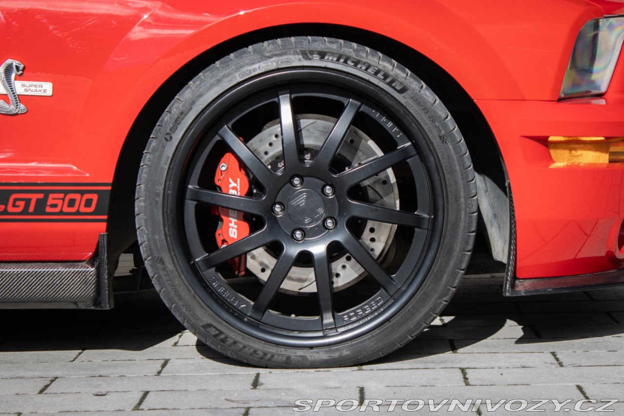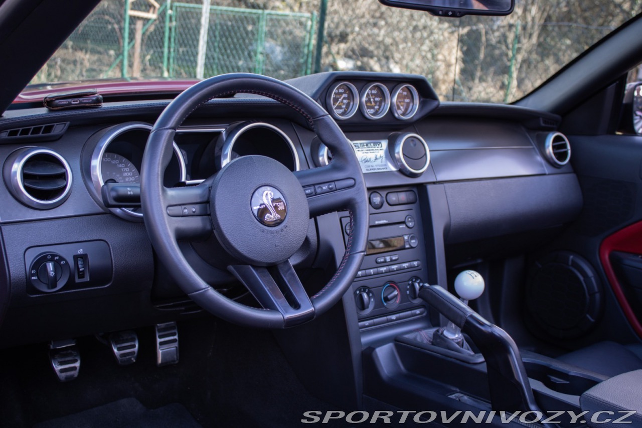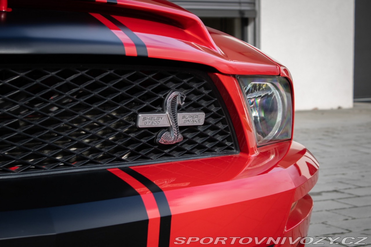 | Nadstandardní výbava: | Výrazne zvýšený výkon oproti štandardnému GT500, upravený podvozok Shelby, Špecifické Super Snake body prvky, označenie CSM (Carroll Shelby Mustang) s jedinečným sériovým číslom, predná kapota s výduchmi, Pretekárske pruhy, 20 Shelby disky kolies, výkonný brzdový systém (Brembo), športový podvozok Shelby, zadný spoiler, prémiový audiosystém, hlinníkové pedále, trakćná kontrola Výbava: ABS, Airbagy, Airbagy - počet, ESP, Systém kontroly tlaku v pneumatikách (TPMS), Autorádio, Elektrické okná, Elektrické sedadlá, Elektrické zrkadlá, Klimatizácia, Kožený interiér, Kožený paket, Lakťová opierka, Multifunkčný volant | |