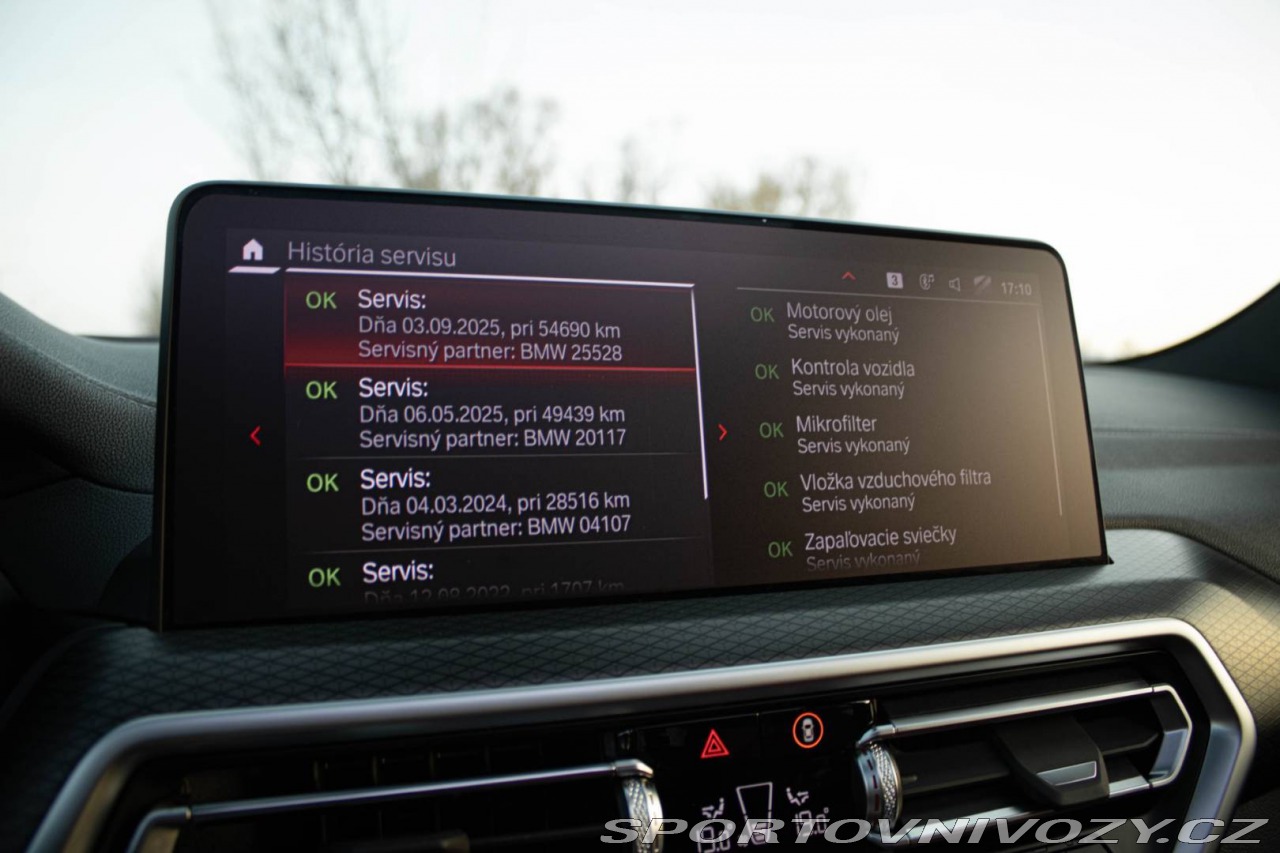 | Doplňující popis: | Nádherná X3 v ostrej verzii M competition v špičkovom stave, ako nové. Vozidlo je pravidelne servisované, predmetom výmeny servisu bola tiež výmena oleja v prevodovke a hnacom ústrojenstve. Na celom vozidle je aplikované ochranná PPF fólia v hodnote 3500€. Vozidlo je v stave sadnúť a užívať si ho. Továrenská záruka do 30/06/2027 . Vozidlo nebolo havarované. Prešlo kontrolou poisťovacích záznamov, exekučných záznamov, kontrolou merania laku a dokladov. Skontrolované fyzicky, aj prostredníctvom registra prevádzkových záznamov vozidla. Ponúkame možnosť výhodného financovania na mesačné splátky, takže si svoje nové vozidlo môžete užívať hneď, bez zbytočného čakania s akontáciou od 0% a splátkami až na 96 mesiacov. Ak už máte vlastné auto, nemusíte riešiť jeho predaj – vezmeme ho od vás priamo do protihodnoty. Stačí, keď s ním prídete k nám, my ho ohodnotíme a jeho cenu vám odpočítame z hodnoty nového vozidla. Vy tak ušetrite čas, starosti aj peniaze a celý proces prebehne rýchlo a jednoducho – odchádzate rovno na novom aute bez zbytočného vybavovania. Vozidlo sa nachádza v Trenčíne. Viac informácií Vám radi poskytneme na telefónnom čísle 0918 479 811. | |