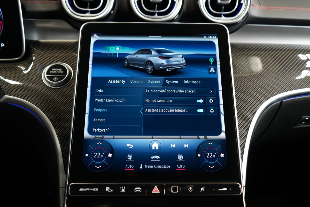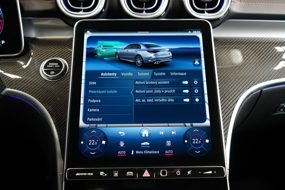 | Doplňující popis: | AS261747 Záruka: Vůz je v plnohodnotné tovární záruce Výbava: Barva: Černá Obsidian, metalický lak Čalounění: Tkanina / syntetická kůže / mikrovlákno – černá/antracit 20 dvoupaprsková kola AMG Stříbrně lakované brzdové třmeny Sada pro integrování smartphonu Apple Carplay, Android Auto Řízení zadní nápravy Nezávislé topení Tempomat s regulací odstupu Plus (DISTRONIC PLUS) Aktivní parkovací asistent Přední sedadla elektricky nastavitelná s paměťovou funkcí Aktivní asistent jízdního pruhu (kamera) Vnitřní a vnější zrcátka s automatickou změnou odrazivosti Zadní snímače pro asistenta jízdy v pruzích Příčná podpora DISTRONIC PLUS (DTR+Q) Přední senzory pro monitoring křižovatek Paměťová sada (sedadlo řidiče, sloupek řízení a zrcátka) Paket odkládacích prvků Funkce projekce přes světlomety Dvojitý držák nápojů Světlomety LED digitální Skener otisku prstu Dešťový senzor Systém tísňového volání eCall Panoramatické posuvné skleněné střešní okno Automatická 9stupňová převodovka Vyhřívaný multifunkční volant Head,Up displej Advanced Ocelové odpružení s nastavitelným tlumením Kontrola tlaku v pneumatikách Vnější zpětná zrcátka elektricky sklopná Kamera 360° Přední a zadní parkovací senzory Dálkově ovládané parkování Premium Rozpoznávání dopravních značek Vnitřní čalounění stropu látkové černé Digitální rádio se standardem DAB Automatická regulace rychlosti Projekce loga přes zrcátko Automatické zapínání dálkových světel Plus (IHC+) USB Středová konzola černá, vysoký lesk Soundsystém Burmester Sklo s tmavým tónováním Hands,free access Vyhřívaná sedadla vpředu Ostřik skel vyhřívaný Sada, Osvětlení vnitřního prostoru Komfortní zavírání víka zavazadlového prostoru KEYLESS Ambientní osvětlení Premium Plus Bezdrátové nabíjení telefonu v přední části ISOFIX Zadní loketní opěrka Volič jízdních režimů AGILITY SELECT Ozdobné prvky, karbon s vysokým leskem Aktivní asistent změny jízdního pruhu Rozšířené rozjíždění při provozu Stop,And,Go Přizpůsobení rychlosti v závislosti na trase Asistent nouzového zastavení s varováním hands,off při změně jízdního pruhu Automatický asistent změny jízdního pruhu Volant AMG,kůže Nappa Vozidlo s 4MATIC / pohonem všech kol Sada jízdních asistentů Paket zrcátek Sada Night Zimní sada Výbava interiéru AMG Entry Performance Augmented Reality Video Nastavení bederní opěrky vpředu Rohože – AMG Přístrojová deska a spodní hrana bočních oken čalouněné kůží (syntetická kůže nappa) Prahové lišty osvětlené Tlačítka na volantu AMG (AMG DRIVE UNIT) Odtrhová hrana linie AMG | |