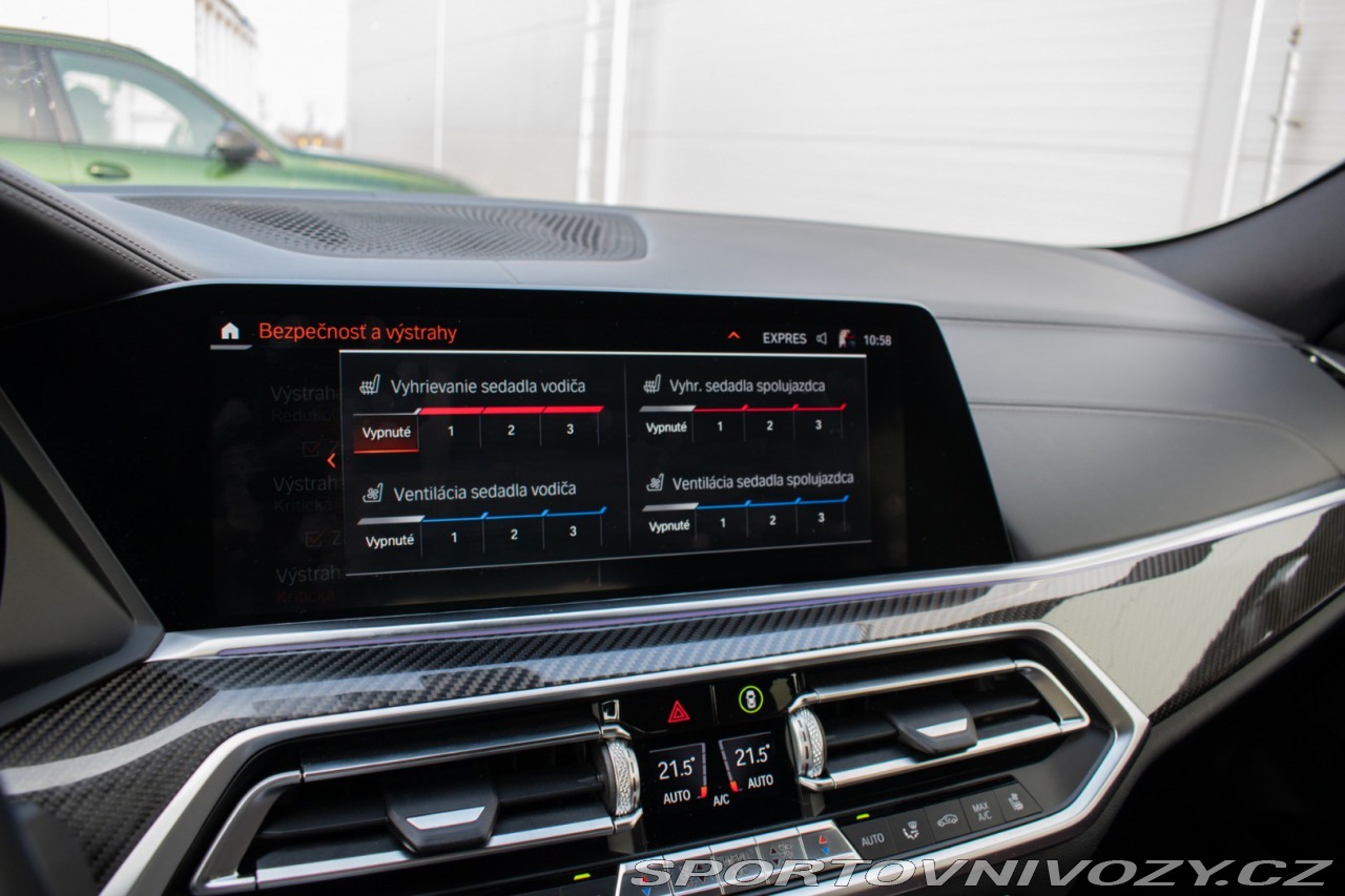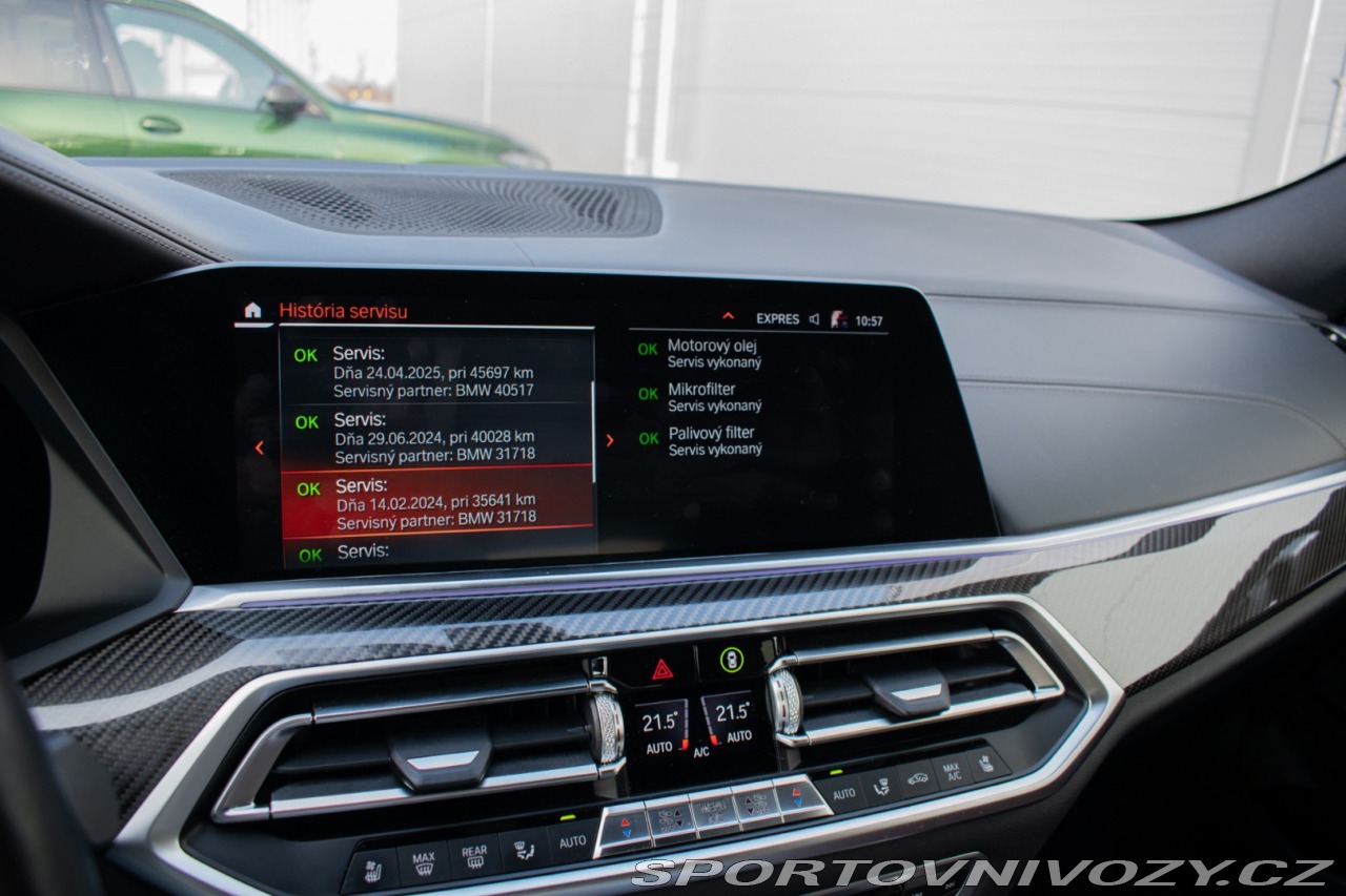 | Nadstandardní výbava: | Asistent brzdenia, Asistent diaľkových svetiel, Asistent parkovania, Asistent pozornosti, Automatické ovládanie zadných dverí, Brzdové svetlomety s odstupňovanou intenzitou, Dynamická kontrola trakcie (DTC), Elektronický snímač hladiny oleja, Kryty spätných zrkadiel vo farbe vozidla, LED zadné svetlá, Multifunkčný volant, Operadlá zadných sedadiel sklopné a delené 40:20:40, Podlaha batožinového priestoru s odkladacím priestorom, Predná a zadná lakťová opierka, Predné a zadné brzdy s vnútorným chladením, Predné olemovanie mriežky chladiča vo vysokolesklom chrómovom prevedení, Senzor nárazu, USB porty, Vyhrievané dýzy ostrekovača, Výškovo a pozdĺžne nastaviteľný volant, Športové predné sedadlá, HARMAN / KARDON AUDIOSYSTÉM, BMW Laser svetlá, ovládanie gestami, natáčacia zadná náprava.Panoramatické strešné okno Sky Lounge s integrovaným LED osvetlením. Výbava: ABS, Adaptívny tempomat, Airbagy, Airbagy - počet, Alarm, Brzdový asistent, Centrálne zamykanie, Deaktivácia airbagov, DSC, ESP, Imobilizér, Isofix, Natáčacie svetlomety, Parkovacia kamera, Systém kontroly tlaku v pneumatikách (TPMS), Asistent rozpoznávania dopravných značiek (ISLW/ISLA), Varovanie o vzdialenosti (BAS Plus), Systém rozpoznania únavy vodiča (DAW), 360° kamera, Systém tiesňového volania (e-Call), Upozornenie premávky za vozidlom (RCTA), Asistent diaľkových svetiel (HBA), Autorádio, Adaptívny podvozok, Bezkľúčové otváranie dverí, Bezkľúčové štartovanie, Bluetooth handsfree, Diaľkové ovládanie zamykania, Dotykový displej, Elektrické okná, Elektrické sedadlá, Elektrické zrkadlá, Elektrické ovládanie kufra, Fólie, Klimatizácia, Klimatizovaná priehradka, Kožený interiér, Kožený paket, Lakťová opierka, LED svetlomety, LED svietenie, Multifunkčný volant, Navigačný systém, Odvetrávané sedadlá, Palubný počítač, Pamäťové sedačky, Parkovacie senzory, Parkovací asistent, Sedadlá s masážnou funkciou, Tempomat, Vyhrievané sedačky, Vyhrievané zrkadlá, Vyhrievaný volant, Vonkajší teplomer, Elektrický šíber, Apple CarPlay, Android Auto, Welcome light, Radenie pod volantom, Ambientné osvetlenie, Asistent jazdných pruhov, Asistent rozjazdu do kopca, Dažďový senzor, Doťahovanie dverí, Head-up display, Hliníkové disky, Hmlovky, Kontrola mŕtveho uhla, Panoramatická strecha, Stop&start systém, Strešné okno, Strešný nosič, Svetelný senzor, Ťažné zariadenie | |