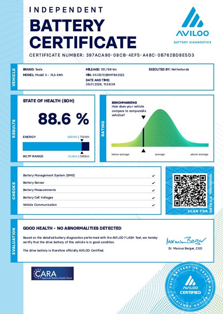 | Doplňující popis: | Tesla Model 3 Long Range Dual Motor - 366kW SOH 88, 6% (ODPOČET DPH) - cena uvedena vč. DPH, baterie 74, 5 kWh, dovoz: EU, VIN: 5YJ3E7EB9MF842022, elektro, do provozu: 29.12.2020, najeto: 161813 km, pohon kol: 4x4, automatická převodovka, STK do: 3/2028, WLTP 580 km, procesor INTEL ATOM, MATRIX SVĚTLOMETY, TAŽNÉ ZAŘÍZENÍ, klimatizace, parkovací kamera, přední a zadní vyhřívaná sedadla. Záruka na Akumulátor a hnací ústrojí 8 let nebo po ujetí 192.000 km (podle toho, co nastane dříve).*MOŽNOST VYKOUPENÍ VAŠEHO STARÉHO VOZU PROTIÚČTEM* *MOŽNOST VÝHODNÉHO FINANCOVÁNÍ už bez nulové akontace* Pro nezávaznou kalkulaci nás neváhejte kontaktovat. Nutno vždy volat předem! Prohlídky možné i mimo pracovní dobu tel. 732710796 Mates auto. Nejedná se o návrh na uzavření smlouvy (nabídku) dle § 1731 zákona č. 89/2012 Sb., občanský zákoník, ale o nezávaznou nabídku., | |